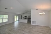 TRANQUIL LOCATION FOR THIS 3 BED/2 BATH HOME. This home available now for annual rental. Convenient location in North Port near Sumter Blvd exit. Quiet street with a private wooded backyard. Ceramic tile floors throughout the living areas. Large living room/kitchen area with vaulted ceilings. Pet friendly with size and breed restrictions.