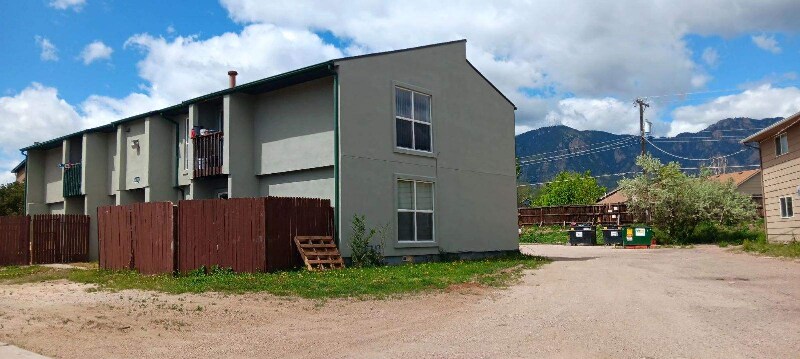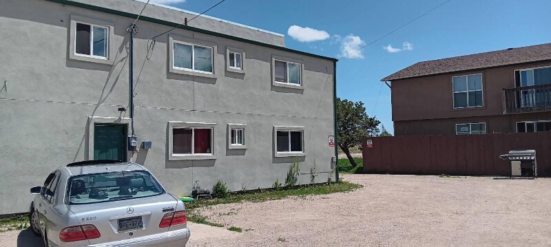 Property Id: 1236794 This 4 plex building has all new windows, new exterior stucco, new roof and new gutters. The upstairs 2 bedroom, 1 bath apartment is completely renovated with new interior paint, new flooring throughout, completely new bathroom, new kitchen cabinets, with new dishwasher, disposal and microwave. Stove and refrigerator are not new, but clean and in good working order. The apartment is quite roomy. Large living room with adjacent dining area leading through a sliding glass door to a private balcony. The two bedrooms are very good sized, with lots of closet space. All utilities included except internet & TV. The interior common spaces of the building are remodeled as well. Shared coin operated laundry room on the upper level for all 4 units to use. Located close to Fort Carson and I-25 for easy access.