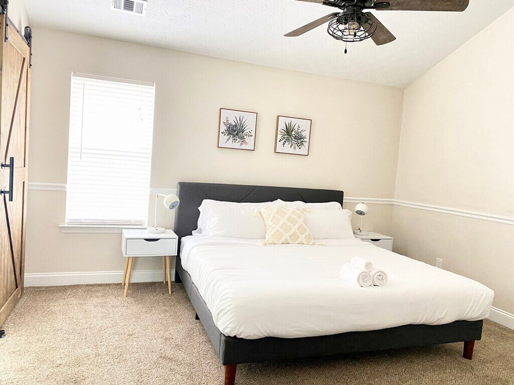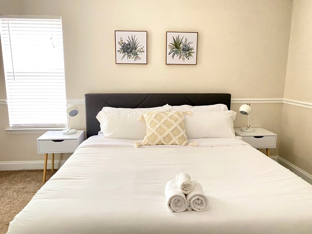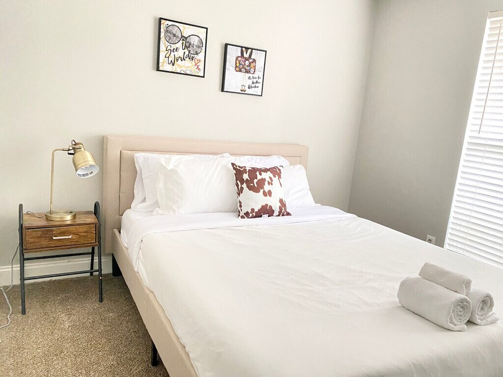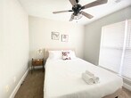Relax with the whole family at this peaceful retreat, where you can feel at home. This beautifully maintained property offers a serene environment, perfect for unwinding. The apartment features a cozy living space with a comfortable couch and a 50+ inch TV, ideal for family gatherings or quiet evenings. The master bedroom includes a king-sized bed and a full bathroom with a shower, while the first and second bedrooms each offer a queen-sized bed. An additional queen air mattress is available on site, and a twin air mattress can be requested in advance for larger parties. The home is equipped with a Nest Thermostat for added comfort, and an onsite washer and dryer for convenience. Feel the comforts of home while on vacation in this clean and beautiful space. The living area is designed for relaxation, featuring a comfortable couch and a 50+ inch TV. The kitchen, though not fully equipped like your home, includes a full-sized refrigerator, microwave, oven, and coffee maker, along with basic kitchenware for simple meals. Enjoy meals at the cozy dining table, making it a perfect spot for family dinners. The property offers free Wi-Fi for all guests. For those traveling with pets, small pets under 25 lbs may be approved with prior authorization and a nonrefundable pet fee of $150 per pet per stay, with a maximum of two pets allowed. Mid-stay cleaning services can be requested for an additional fee. Check-in is at 4 pm, and check-out is strictly at 10 am, with a penalty fee of half the night’s stay for late check-out. The property enforces a no-smoking policy, including electronic cigarettes, with a $250 cleaning charge for violations. No loud noise, parties, or events are allowed, and the maximum capacity is 10 people. Unregistered guests will incur an additional charge of $50 per guest per night. The property is pet-free unless prior authorization is given. Parking is available for up to four standard-size cars, with no overnight street parking allowed. Security cameras are installed outside for added safety, and guests are required to respect community guidelines and keep the property clean. The house receives regular pest control treatment, but guests should be aware of the local climate's potential for insects. Immediate removal and no refund will occur if house rules are violated. The apartment includes a desk and chair, providing a perfect space for remote work. Free Wi-Fi is available to ensure a seamless work-from-home experience.
