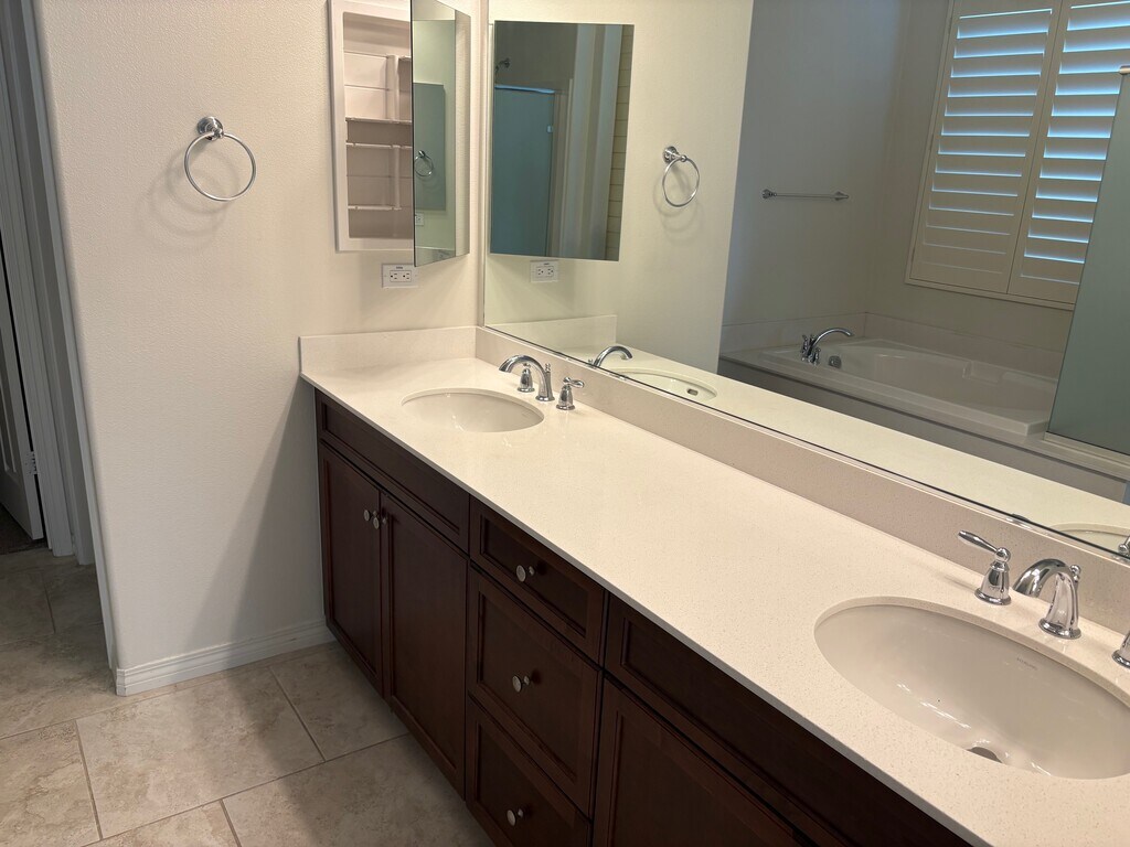 Located at Four Seasons at Terra Lago, a 55+ community. The open kitchen, dining area and family room create a beautiful space that is bright and airy. A center-meet slider opens to a covered patio featuring a spa with a water feature, a fire-pit and and patio misters. Plantation shutters throughout and all windows have been tinted for temperature regulation for year round comfort. The primary suite is quite the retreat complete with a walk-in closet with a custom designed closet organizer and a double vanity. The second bedroom has a private bath. A cozy home office or hobby room provides the perfect space to focus or unwind. This home also includes a laundry room and a two car garage and a half bath. The amenities are world class at Four Seasons at Terra Lago including a clubhouse, fitness center and more.