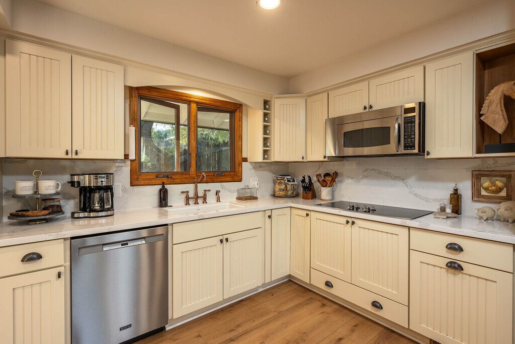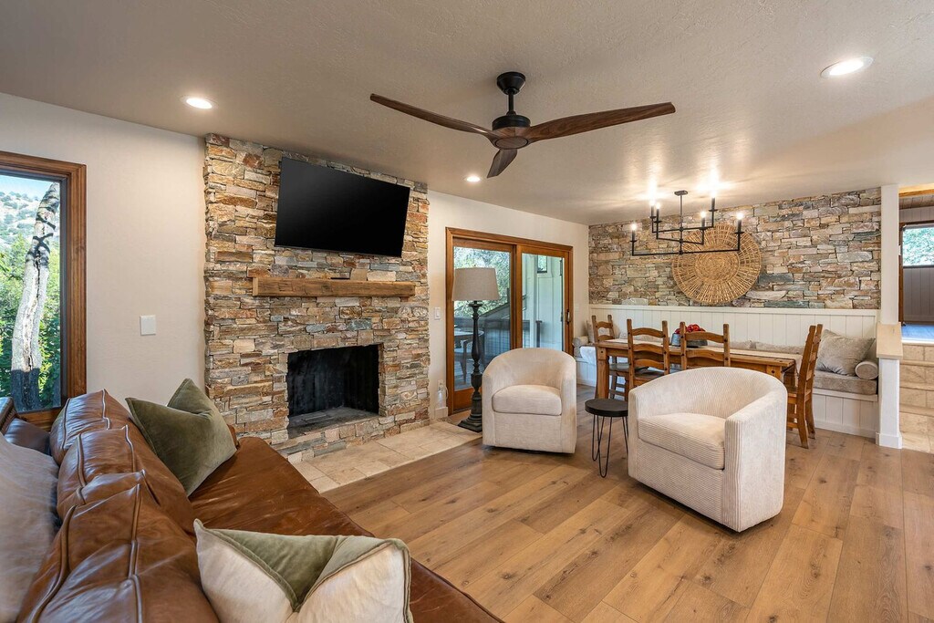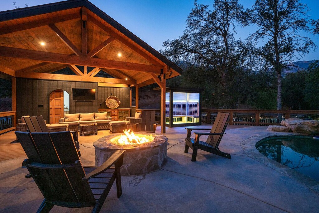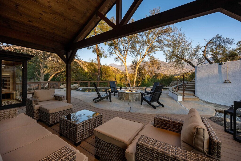 Feel at home in this 4-bedroom home in Three Rivers, CA, offering everything you need for an amazing vacation. This spacious retreat accommodates up to 10 guests. This home features warm rustic touches, open-concept living areas, and large windows framing peaceful mountain views. The fully stocked chef’s kitchen includes high-end appliances, a large refrigerator, ample cabinetry and cooking space, and a drip coffee maker. Enjoy a 50” smart TV, a large leather sofa, and plush seating in the living room. There are also two washers and dryers, board games, corn hole, beach essentials, and a fully fenced yard. Enjoy the private pool, hot tub, private sauna, fire pit, outdoor patio/dining area with a TV, and a BBQ grill. An outdoor shower is also available. Parking is available for 4 vehicles in the driveway and under the carport. Located minutes from the entrance of Sequoia National Park, this home is also near Lake Kaweah (~2–3 miles), Slick Rock Recreation Area (~3 miles), Moro Rock (~22 miles), and Tharp’s Log (~22 miles). Nearby restaurants include River View Grill & Bar (~1 mile), Sierra Subs & Salads (~1–2 miles), Pizza Factory (~1–2 miles), Sequoia Coffee & Kitchen (~1.2 miles), Reimer’s Candy & Ice Cream (~0.8 miles), and Ard Farkle’s at the Golf Course (~0.6 miles). Check-in is at 4pm and check-out is at 10am. No pets are allowed. No parties are allowed—violations may result in immediate termination of the stay. Guests must be 25 years or older to book this property. [SI]