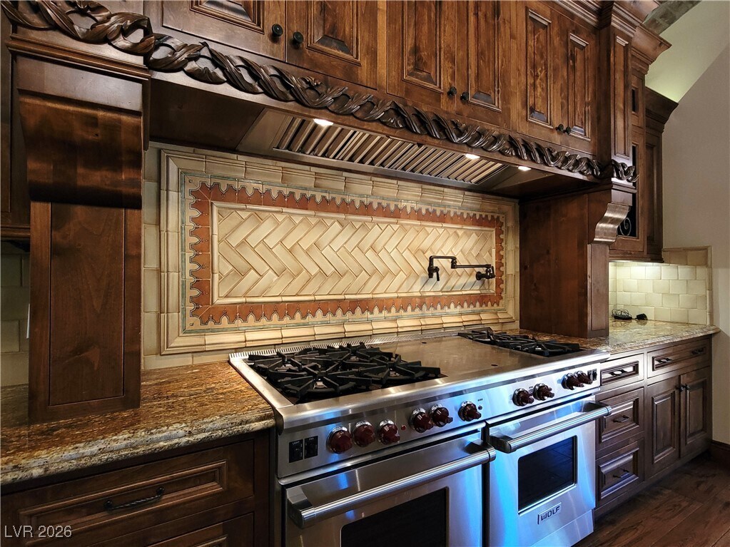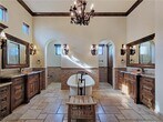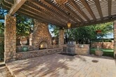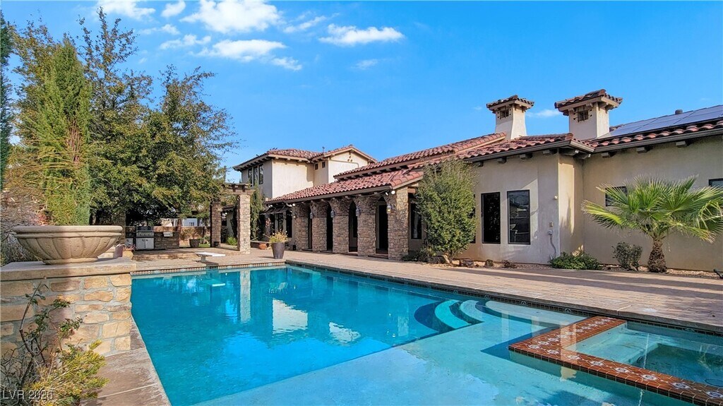 This exceptional custom estate blends refined luxury with modern efficiency, featuring a 100% solar-powered system that delivers exceptionally low monthly electric bills. Rich architectural details—arched brick ceilings, stone finishes, and dramatic iron lighting—create a timeless, upscale atmosphere throughout. The chef’s kitchen showcases a professional Wolf range and stainless steel appliances, artisan tile backsplash, granite island, and custom cabinetry, flowing seamlessly into elegant living and dining spaces ideal for entertaining. The primary suite offers a spa-inspired bath with dual vanities, a steam shower, and a freestanding soaking tub. Outdoors, enjoy a resort-style pool with expansive stone patios and covered entertaining areas. The home also includes a private casita, theatre room, and a 6-car garage, providing exceptional flexibility. The entire home is equipped with Lutron smart lighting and a high-end camera security system for comfort, control, and peace of mind.