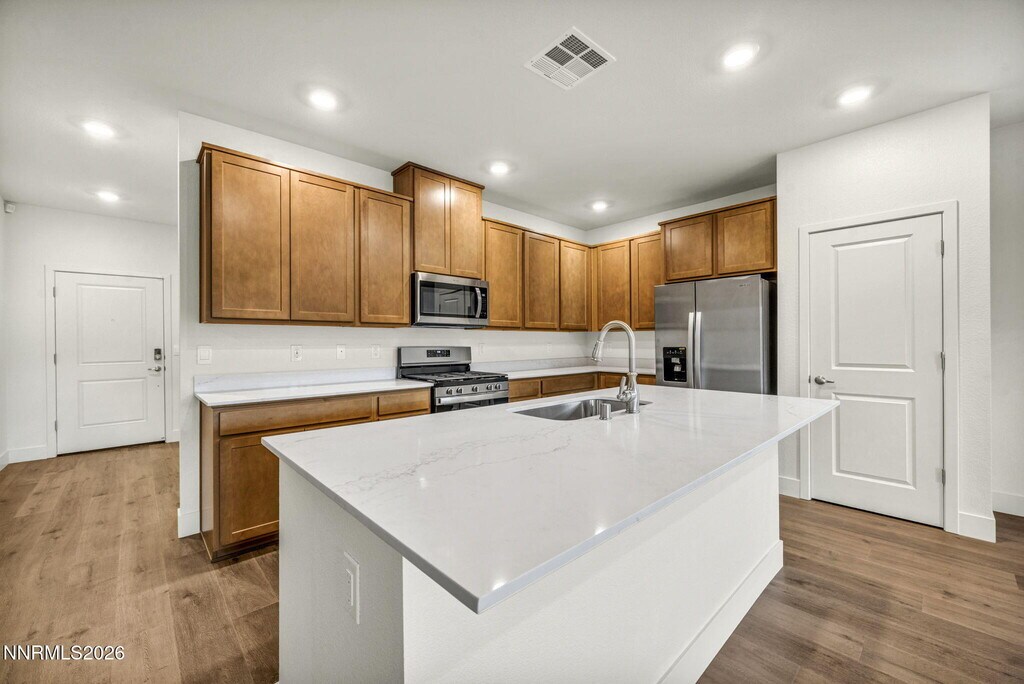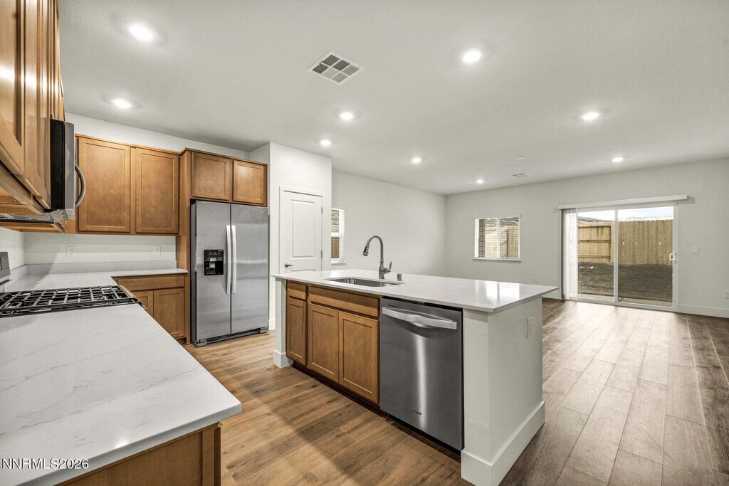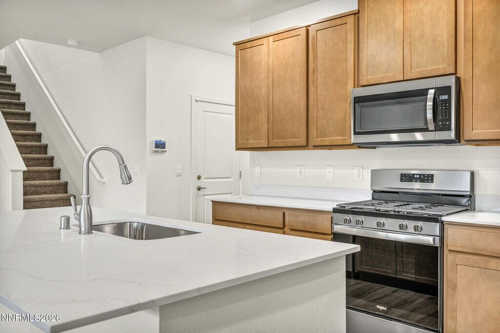 Why rent used when you can be the very first to live in this BRAND-NEW home,just completed and ready for you? Fresh,pristine,and thoughtfully designed with space for everyone — this one truly delivers. Step inside and you'll immediately notice the flexible layout with TWO SPACIOUS LIVING AREAS. Downstairs features an OPEN-CONCEPT GREAT ROOM that flows beautifully into the kitchen — perfect for entertaining,hosting holidays,or gathering with friends. Upstairs,you'll find a HUGE DEN-STYLE FAMILY ROOM that works as a media space,game room,or ultimate kids' hangout. The kitchen shines with BRAND-NEW COUNTERTOPS and a WALK-IN PANTRY,offering plenty of storage and prep space with clean,modern finishes. The PRIMARY SUITE IS LOCATED DOWNSTAIRS and includes a WALK-IN CLOSET and WALK-IN SHOWER for easy accessibility. There's also an ADDITIONAL DOWNSTAIRS BEDROOM AND FULL BATH,ideal for guests,multi-gen living,or a home office. Upstairs features TWO MORE BEDROOMS,A SHARED FULL BATH,and that oversized den space that really sets this home apart. Step outside to the COVERED PATIO and fire up the BBQ — this is a space you'll actually use. NEW LANDSCAPING WILL BE INSTALLED WHEN WEATHER PERMITS,so the exterior will only get better from here. The garage includes an EV CHARGING STATION,and the home is equipped with a SMART HOME SYSTEM for added convenience. Located just minutes from Eagle Canyon ballfields and recreation area,near Wingfield Springs Golf Course,and about five minutes to shopping at Raley's,this is easy living in a fantastic Sparks location. THIS HOME IS SO NEW GOOGLE MAPS MAY NOT SHOW ACCURATE DIRECTIONS,SO IF YOUR GPS ISN'T WORKING PLEASE FOLLOW THESE DIRECTIONS: VISTA TO RT. HOMERUN TO LEFT TOUCHDOWN TO LEFT PARK MESA TO LEFT MISTY WOODS WAY TO RIGHT LAZY MEADOW TO RT PAINTED CLOUD. Brand new,smart layout,prime location — must see to appreciate. MLS# 260002068