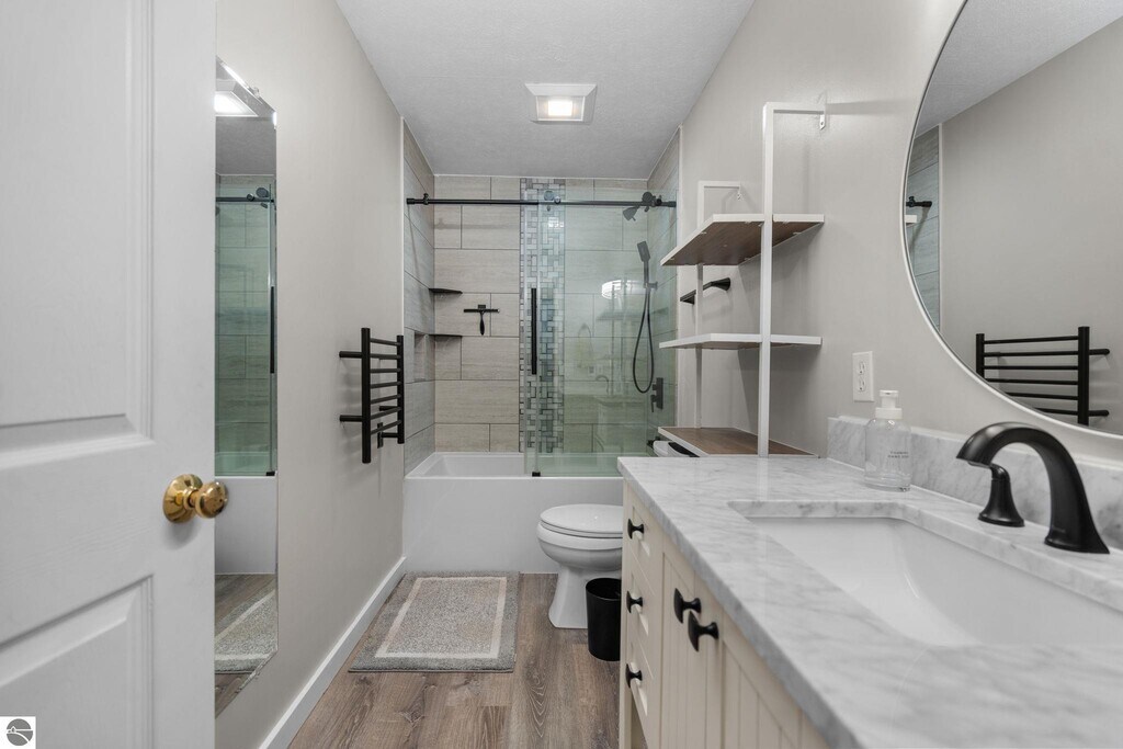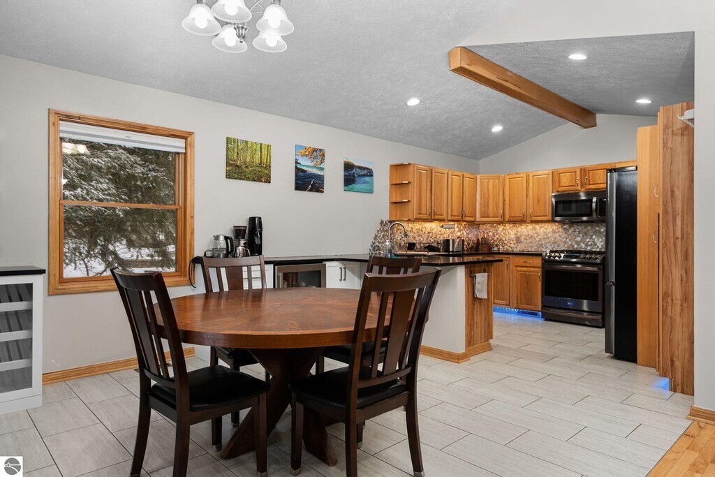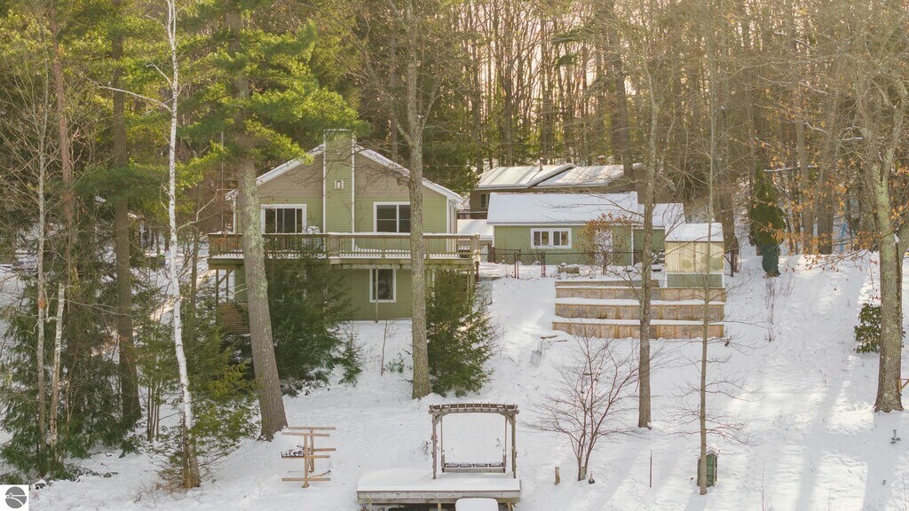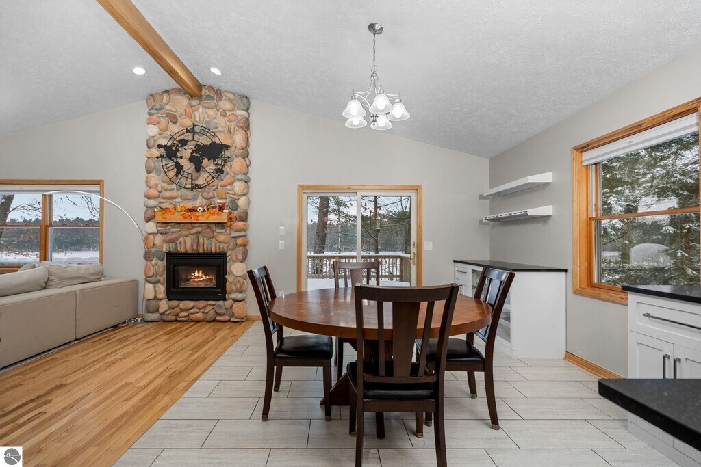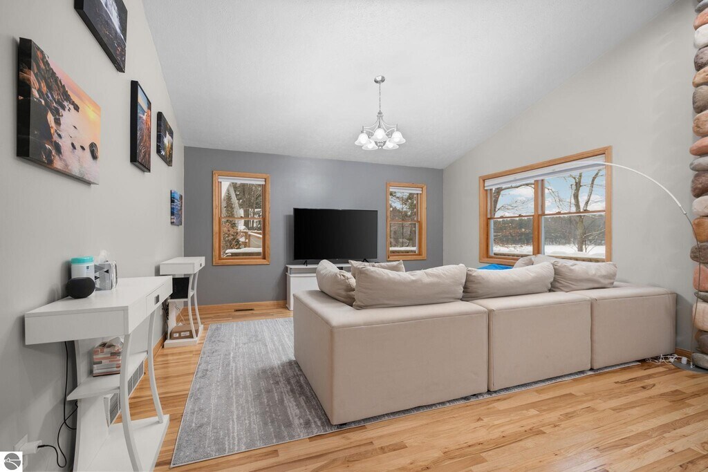 Fully furnished 4-bedroom, 3-bath home available for a one year (negotiable) lease with 100 feet of private frontage on Vandervoight Lake. This property features an open floor plan with cathedral ceilings and hickory hardwood flooring, cabinetry, and trim. The kitchen includes granite countertops, a gas stove, dishwasher, and beverage fridge, and the main living area is anchored by a gas fireplace. Interior comforts include heated floors under all tiled areas, heated towel racks and toilet seats, on-demand hot water, a whole-home humidifier, water softener, water filtration system, and a Ring camera security system. The lower level offers additional finished living space with walk-out access to the lower deck, while the upper deck provides lake views. A heated two-car garage with workshop area, landscaped grounds, wrap-around deck, and an in-ground sprinkler system complete the exterior features. Lease is $3,500 per month and includes all furnishings.