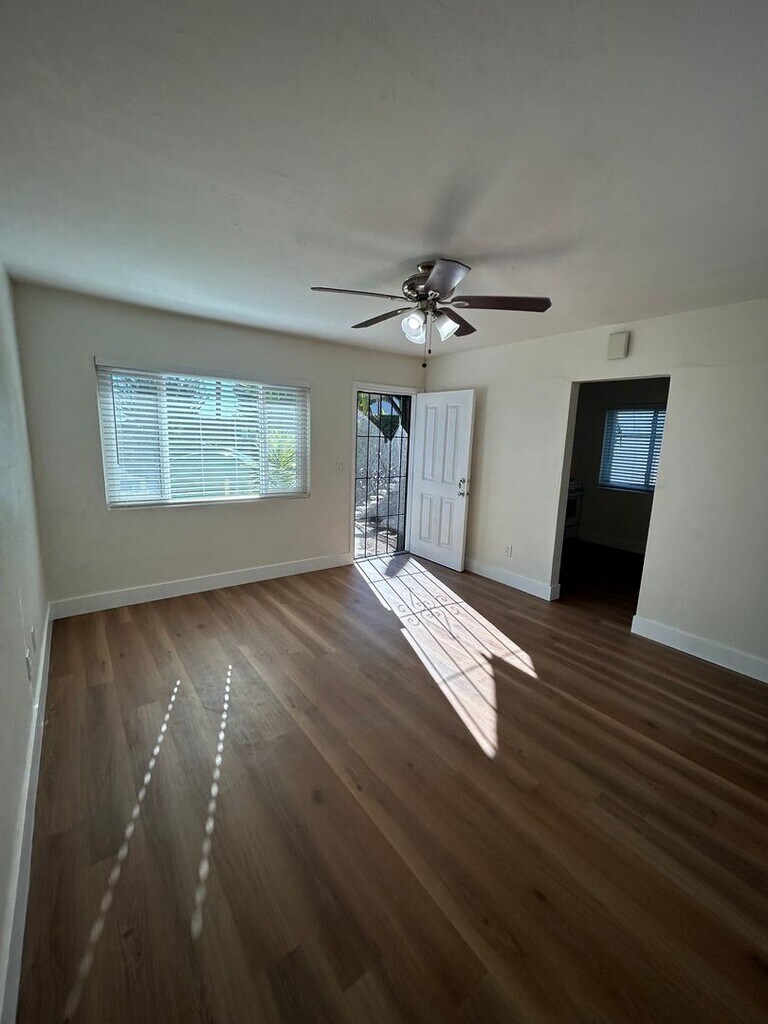 This quaint 2 bedroom 1 bathroom apartment in West La Mesa features hard surface floors in the living areas and carpet in the bedrooms, a private patio, and dedicated off-street parking. The property features a community grilling area with seating and on-site laundry. Sorry, no pets. Tours are available in-person or virtually via FaceTime, M-F 9am-4:30pm. Qualified applicants have a gross monthly income of 2.5x the rent and a credit score of 650 or higher. Applications can be found on our website at Income Property Advisors Inc. DRE# 01949237
