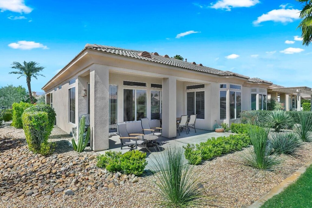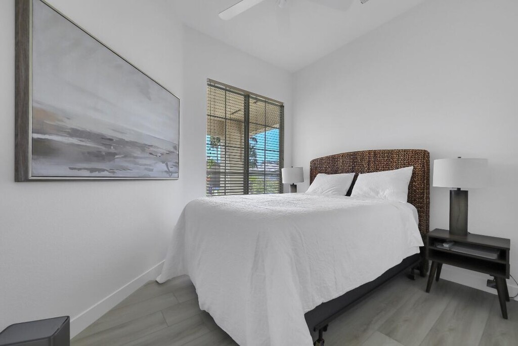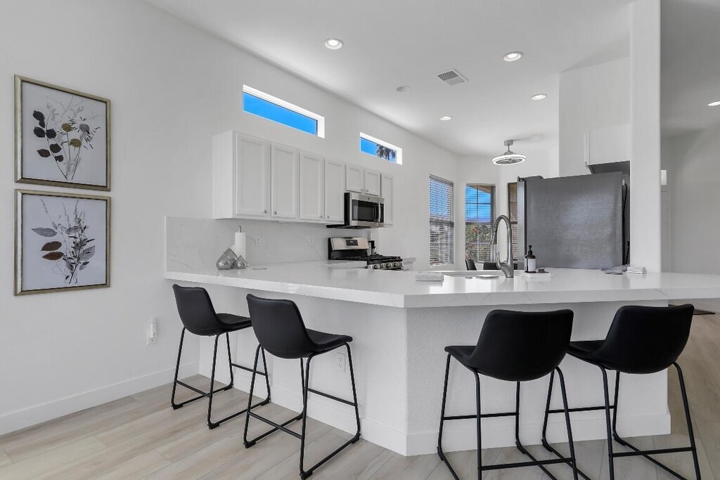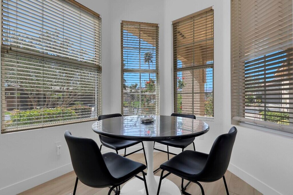 This newly remodeled home boasts stylish new furnishings,beautifully updated floors,a modern kitchen with sleek countertops and stainless-steel appliances,and completely renovated bathrooms featuring elegant fixtures and contemporary finishes,creating a fresh,inviting space perfect for comfortable living. The open-concept living area is perfect for both relaxation and entertaining,with large windows that frame serene views of the lush green surroundings. Enjoy your morning coffee or unwind in the evening on the private patio,overlooking the peaceful golf course. This home offers the perfect escape in the heart of the vibrant 55+ Heritage Palms Country Club community. Ideally located,you'll have everything you need within reachwhether you're soaking up the sun by the pool or taking part in the endless outdoor activities. Tenants pay a $300 HOA fee to access a wide range of amenities,including an 18-hole championship golf course,fitness center,tennis and pickleball courts,indoor and outdoor pools,and a full-service clubhouse with dining options. You're just minutes from popular restaurants,shopping,and entertainment venues,ensuring both convenience and luxury during your stay. Whether you're here to relax by the pool,explore the beautiful surroundings,or enjoy the vibrant community,this home is the perfect place to experience the best of desert living.