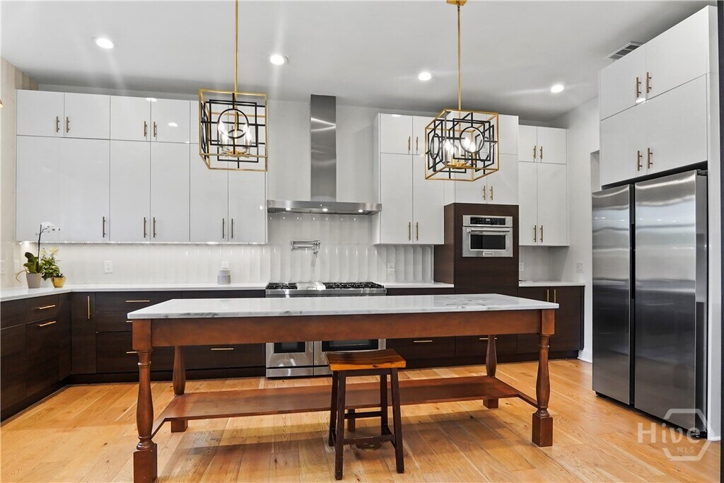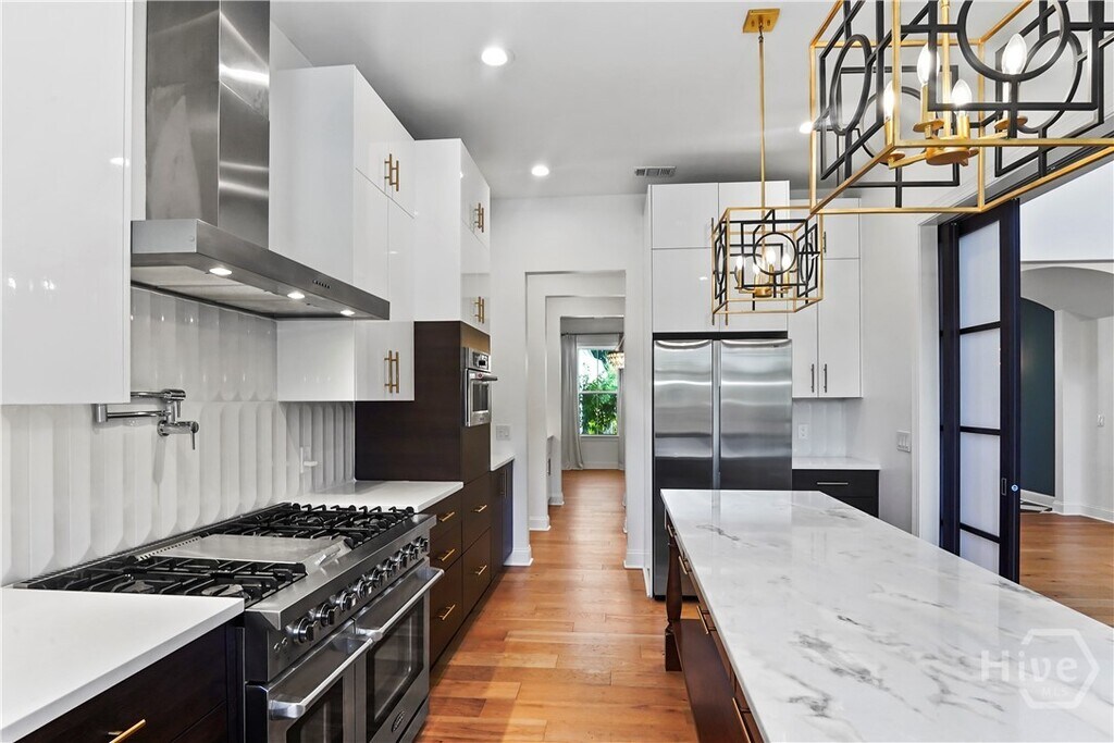 Welcome to this stunning custom built 5 bed 4.5 bath home plus loft area & storage/playroom. Open-concept living space w/high ceilings & abundant natural light. The kitchen incl a large island,elegant cabinetry,& stainless steel appliances. Large primary bedroom w/ electric fireplace & an ensuite bathroom featuring tub,double vanities,& separate shower w/ multiple shower heads. Private backyard w/ screened-in back porch w/ its own fireplace,a fenced backyard w/ waterfront views & a heated,in-ground swimming pool. Additional highlights include a spacious 3 car garage plus a golf cart garage with its own outlet,enhancing convenience and storage. Waterways is a highly sought-after gated community offering something for everyone including kayaking,gym,marina,dog park,walking/running paths,multiple pools,and more.Close to I-95,Ft Stewart,Hyundai,HAAF,restaurants,shopping,& RH schools.