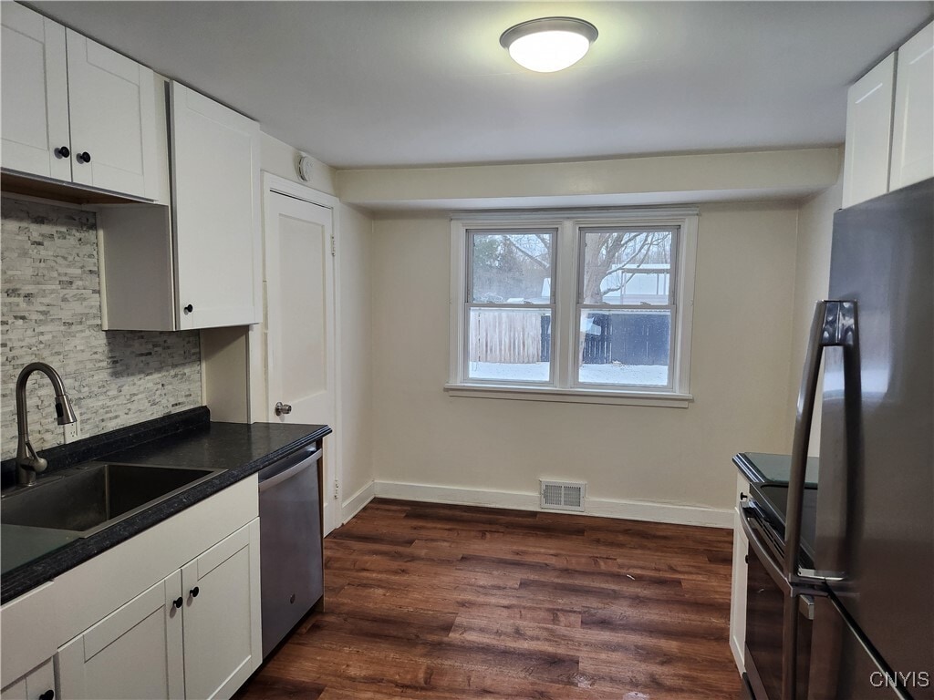 Charming Recently updated 4 bedroom,1.5 bath single family home in Cicero North Syracuse School District ! 2 bedrooms downstairs. Beautiful kitchen boasts stainless steel appliances including microwave and dishwasher! Stainless Farmhouse sink! Washer,dryer hook up in basement. Garage parking! Nice back yard. Tenant pays ALL utilities,including water. One month security,along with first month's rent required prior to move in. NO PETS,NO SMOKING!!