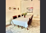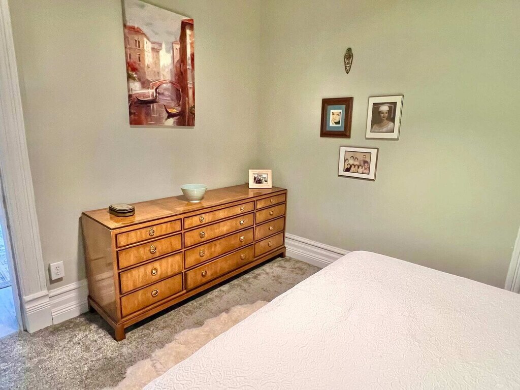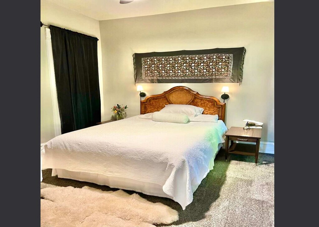Feel at home in this eclectic Victorian retreat on a quiet street at the edge of Salt Lake City’s Fairpark district. This cozy home features 2-bedrooms, 1-bathroom, a large formal dining room, and a parlor with a TV and sofa bed. The dining room is the true centerpiece of the home, ideal for lingering meals, morning coffee, or planning the day’s adventures. The parlor provides a cozy spot to unwind, complete with a TV and a fold-out sofa bed for additional sleeping space. Step outside to a beautifully landscaped backyard designed for rest and connection, perfect for enjoying a quiet evening, reading a book in the hammock, or sharing a meal on the deck under the open sky. Dogs are welcome with a pet fee. There is a large driveway for parking, along with free street parking on a street that sees very little traffic. Located just outside the bustle of downtown yet close enough to enjoy all Salt Lake City has to offer, this small Victorian home is an ideal blend of tranquility, character, and convenience. It's blocks from the Central City District and there are plenty of public transit options in the neighborhood. The home is 3.5 blocks away from the trolley line, which leads east to the downtown district or west to the airport. There are several bus stops within a block as well. Cats are not allowed. [SI]