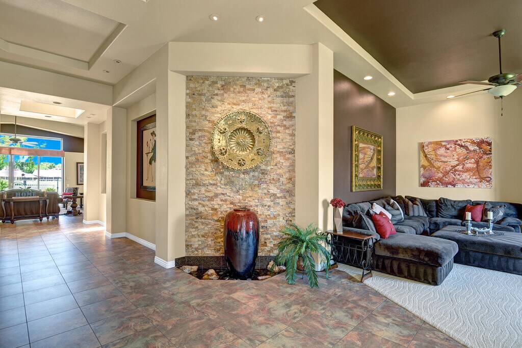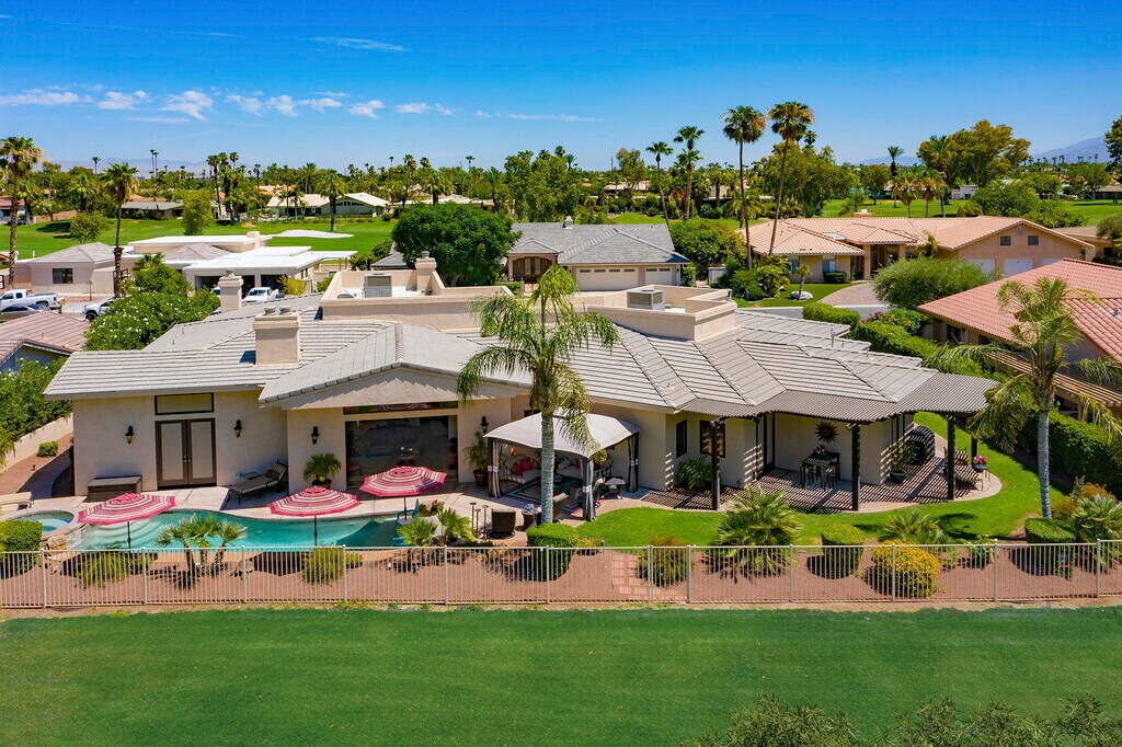 Gabriel FrancoCome enjoy this custom built home located in Bermuda Dunes Country Club, offering over 4,000 sq. ft. of living space with 4 bedrooms, 4.5 bathrooms, and a view that can't be beat! Upon entering you are greeted by a beautiful water feature and a family room fit for family lounging or entertaining on any scale. The living room hosts large glass pocket doors that can be folded back to create a gorgeous indoor/outdoor area. Perfect for conversation and a cocktail with friends and family while you enjoy a sunset view of the pool and golf course. If you prefer the outdoors, this home offers stylish and comfortable garden furniture with a fire-table for those chilly nights. There is a private pool and spa with a tanning shelf for your enjoyment, and a BBQ for outdoor cooking and dining. Back in the home there is a large flat screen television in the family room with a beautiful stacked stone fireplace and easy access to the fully stocked kitchen. The kitchen is nicely upgraded with granite counter tops, stainless steel appliances, and a long counter perfect for any chef who needs prep space. The master bedroom features a king bed with a large luxurious bathroom and walk in closet. The second and third bedrooms each offer king beds and their own private bathrooms. The fourth suite offers a queen bed with private bathroom. Book now for a spectacular home in a community nationally recognized for its rich history and star studded guest list.