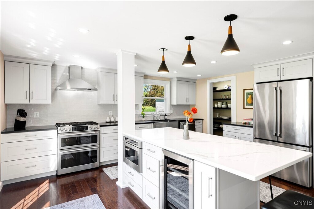 Stunning,fully furnished 3-bedroom,2-bath home available for rent. The house sits on 2 acres in the sought-after Skaneateles School District. Comprehensively renovated in 2022 with beautiful furnishings and décor throughout. The chef's kitchen features premium GE Cafe stainless steel appliances,including a double oven gas range,microwave drawer,and wine cooler,plus custom cabinetry,granite counters,a spacious island,and a walk-in pantry. New hardwood flooring and luxurious bathrooms with marble,ceramic tile,and a walk-in glass shower. First-floor laundry for convenience. Exceptional outdoor amenities include Skaneateles Creek waterfront access perfect for trout fishing,a park-like backyard with breathtaking views,composite deck patios,and extensive professional landscaping. This meticulously maintained turnkey retreat offers the perfect blend of luxury,convenience,and natural beauty. 3-month minimum lease required.