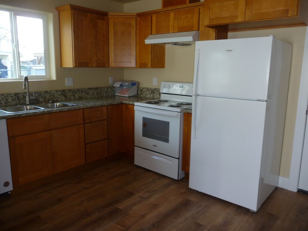 2 Bedroom, 1 bath 750 sq. ft. Open floor plan Granite counters, Hardwood floors, Oak cabinets Ductless heat and air conditioning Appliances: DW, stove, refrigerator, washer, dryer Includes water and sewer service Note: No garage but there is a 4 by 6 foot shed. Off street parking