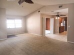 Welcome to Walden Circle! This charming 3-bedroom, 2-bath single-family home is perfectly situated in a prime central location. Step inside to vaulted ceilings and a spacious kitchen with a gas stove and dishwasher--ideal for cooking and entertaining. A flexible 4th bedroom or home office offers extra versatility. The ensuite primary suite features a walk-in closet and private bath, while the fenced yard provides a secure space for pets or play. Enjoy the convenience of a separate indoor utility room with washer and dryer included, plus two dedicated parking spots. Community amenities include a pool, and lawn care is provided. Move-in ready and perfectly located--don't miss your chance to make this your new home!