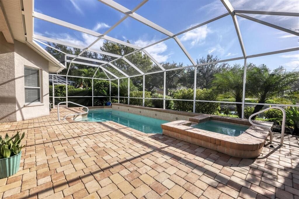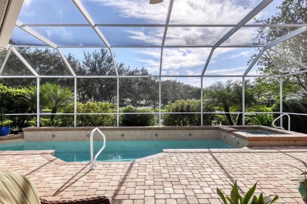 Private Pool Single Family Home Next to IMG Academy: Fully furnished,DOG FRIENDLY,maintenance free,charming,filled with natural light,two-bedroom,two-bathroom plus den and a two-car garage. At almost 2,200sq ft,this home is nestled in the desirable and beautifully landscaped The Greens at El Conquistador neighborhood. The home offers tall,coffered ceilings throughout the main living area and a comfortable open floor plan with split bedrooms. The large and spacious primary bedroom with a high tray ceiling,has a bathtub,walk-in shower and expansive walk-in closet. The second bedroom and guest bathroom,together with its tiled walk-in shower,are off the main entrance. The den is outfitted with a brand-new sleeper sofa for your guests. A generous-sized eat-in kitchen with stainless steel appliances and granite counters opens up to your private oasis consisting of a screened in patio with a heated pool and hot tub. There is also a laundry room with a full-sized washer and dryer. Just minutes to Publix,Target,Home Goods,First Watch and Starbucks. Twenty minutes to the beaches on Longboat Key and Anna Maria Island as well as to downtown Sarasota and its incredible dining options. Electricity (up to $200.00/month),water (up to $100.00/month),sewer,garbage collection,internet,basic cable,and pool/yard maintenance included with rent. The stated rate is for a lease of at least 6 + months. The rate for a 3 month lease is $6,500/month plus applicable short-term fees/taxes,6 months or more $4,999. First month’s rent,last month’s rent and security deposit required to reserve. Schedule your tour today! MLS# A4648253