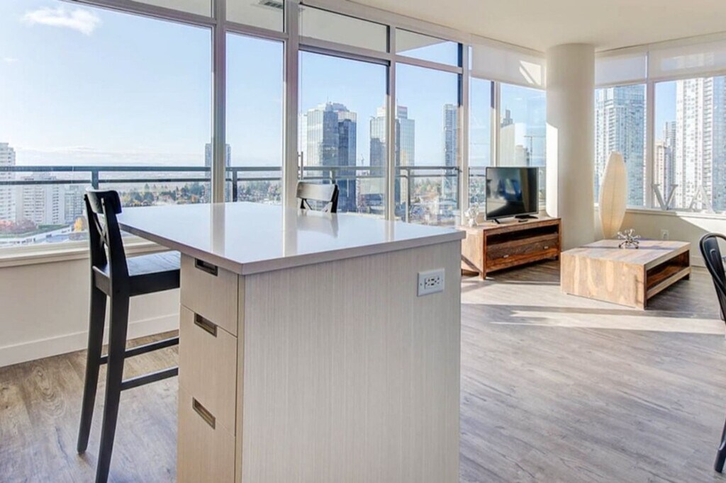 Experience modern living in the vibrant Metrotown neighborhood with this chic 2-bedroom apartment. Perfect for business travelers, couples, or small families, this stylish space effortlessly blends comfort with convenience, making it an ideal spot for both work and relaxation. Enjoy breathtaking views, a fully equipped contemporary kitchen, and the convenience of a 24/7 concierge service. Relax in the spacious living area, designed with comfort and style in mind. Enjoy sweeping views of Vancouver’s vibrant Yaletown from the plush sofa, catch up on your favorite shows on the Smart TV, or simply unwind in this peaceful retreat. Elevate your culinary skills in the sleek, modern kitchen, fully equipped with premium appliances and ample counter space, perfect for preparing everything from quick meals to gourmet dinners. Rest easy in the two tranquil bedrooms each featuring a cozy queen-size bed and scenic neighborhood views. The modern bathrooms offer all the essentials, providing a relaxing start or end to your day. Parking is subject to availability with a fee and reservation is required. IPTV Box with more than 300 channels is available on request with a fee. The Hazel offers luxury amenities, including a rooftop patio with panoramic city and mountain views, a fitness center, a games room, and coworking spaces. Located in the vibrant Metrotown neighborhood, one of Burnaby's most bustling and convenient areas, this apartment offers endless opportunities for shopping, outdoor fun, and cultural experiences. Metropolis at Metrotown, British Columbia's largest shopping mall, is just steps away, offering over 400 stores, dining options, and a movie theater. Central Park, located nearby, features walking trails, picnic areas, tennis courts, and a pitch-and-putt golf course. The Metrotown SkyTrain Station is just a short walk away, providing seamless access to downtown Vancouver in approximately 20 minutes. The area is also bike-friendly and pedestrian-friendly, with a high walk score. Guests will have full access to the entire apartment with complete privacy. The apartment is smoke-free, ensuring a healthier stay for all. A Notice to Vacate must be sent in writing 30 nights before the departure date. Failure to do so will result in a charge of 30 nights (only valid for stays over 30 nights). Reservations can be extended with 30 nights notice and are always subject to availability and rate variances. Enjoy high-speed Wi-Fi, a dedicated workspace, and a peaceful atmosphere, making it perfect for productivity and relaxation. The apartment is designed with functional elegance and contemporary design, featuring thoughtfully curated furnishings and energy-efficient features. [SI]