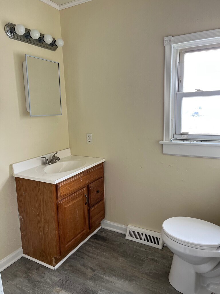 Beautiful, large 4 bedroom home. Main floor has large entry, living room, large kitchen, and main floor bedroom and half bathroom. Upstairs has 3 additional bedrooms (one is quite small) and full bathroom with tub and shower. Basement is unfinished with washer dryer hookups and plenty of storage space. There is a long driveway with room for 2 cars to park end to end, and a large shed for the storage of mower, snow blower, bikes, etc. Attractive front porch for hanging out. Resident pays all utilities and does all landscaping and snow removal. All new paint, flooring.