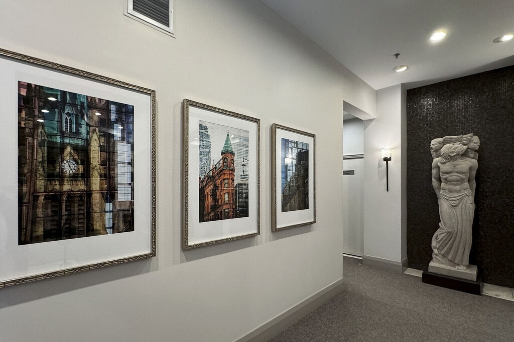 Discover this rarely available gem at The Morgan. With an impressive floor plan and breathtaking panoramic views, this spacious 2-bedroom suite offers a lifestyle of luxury and convenience. Abundant natural light floods the suite through floor-to-ceiling windows. The gourmet-inspired kitchen boasts high-end stainless steel appliances, polished quartz countertops, and ample storage. The large primary bedroom features a walk-in closet and an ensuite washroom. Step out onto the scenic balcony to take in stunning city vistas and North views. Situated near Queen and Spadina, this suite is steps away from TTC, shopping, entertainment, and the bustling finance district.
