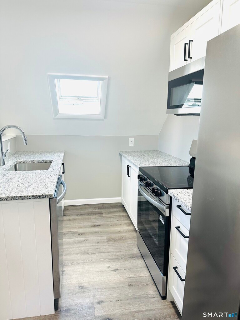 Call for Availability - This completely renovated unit is ideally located in New Britain, right near the Berlin border, with convenient access to major highways, shopping, dining, and a nearby bus stop. Renovated from top to bottom, the apartment features brand-new energy-efficient windows, new Energy Star appliances, an updated bathroom, and brand-new flooring throughout. Enjoy year-round comfort with a state-of-the-art heating and cooling system that can be conveniently controlled from your smart device. A brand-new washer and dryer are located right in the unit. Hot water is included in the rent, and the unit comes with two parking spaces at the rear of the building. For added peace of mind, the building offers a 24/7 monitoring system, providing enhanced safety and convenience. A truly move-in-ready home combining modern upgrades, energy efficiency, and a prime location. MLS# 24151491