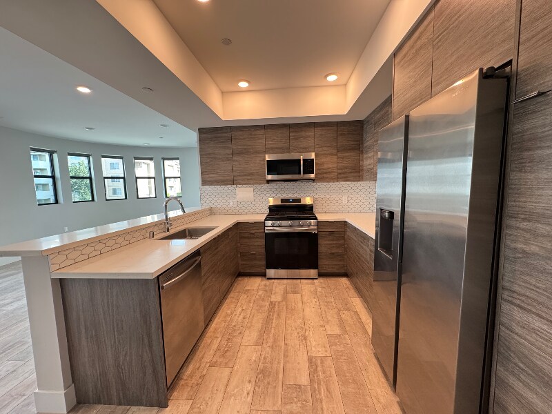 Property Id: 2359311 Welcome to this stunning, fully remodeled 2-bedroom, 2-bath residence located south of the Boulevard. Thoughtfully designed with both style and comfort in mind, this home features an in-unit washer and dryer, central air and heat, a private balcony, and elegant architectural details throughout. The modern kitchen is equipped with stainless steel appliances including refrigerator, microwave, dishwasher, and oven, complemented by sleek quartz countertops. Additional highlights include a walk-in closet, triple-pane windows for enhanced comfort and quiet, a cozy fireplace, and striking curved windows that add unique character and natural light to the space. The building offers secured entry with intercom access and gated parking with two assigned spaces. EV charging is available through the gated parking area. Residents also enjoy access to a spectacular rooftop deck, perfect for outdoor workouts or relaxing at sunset while taking in sweeping skyline views. Ideally located near top-tier dining, shopping, entertainment, and schools, with immediate access to the 101 and 405 freeways. Convenient commuting to UCLA, Brentwood, West LA, and Mulholland. Tenant pays all utilities, including water billed separately through a third-party submetering service. Don't miss out on this exceptional rental opportunity! Please text Leasing Agent for live and video tours.