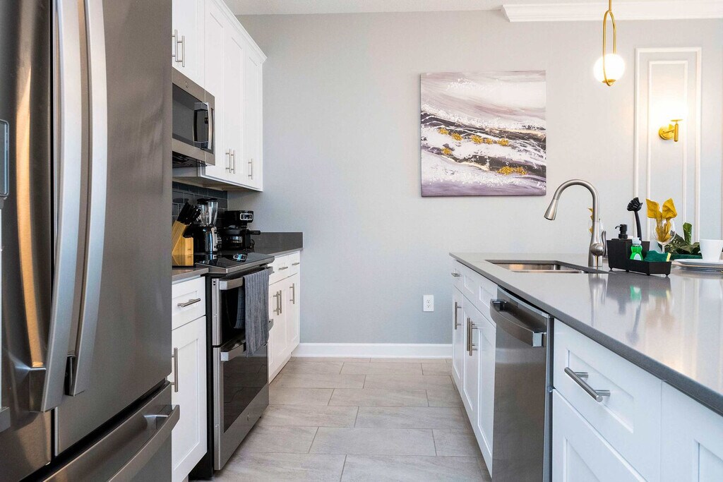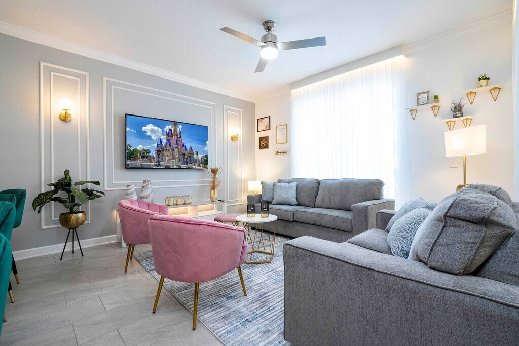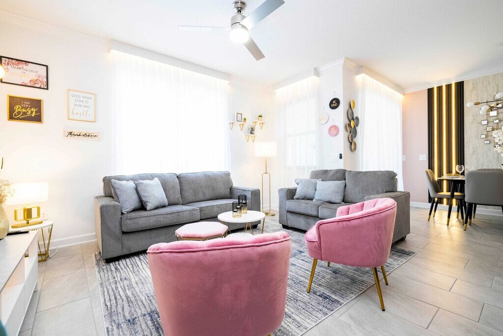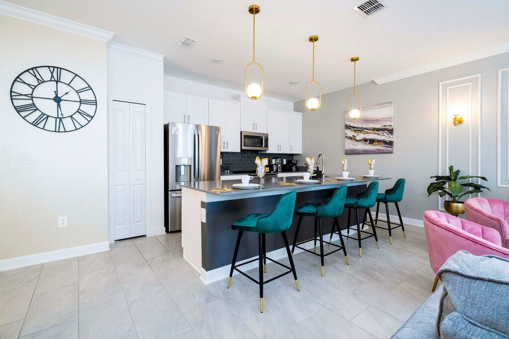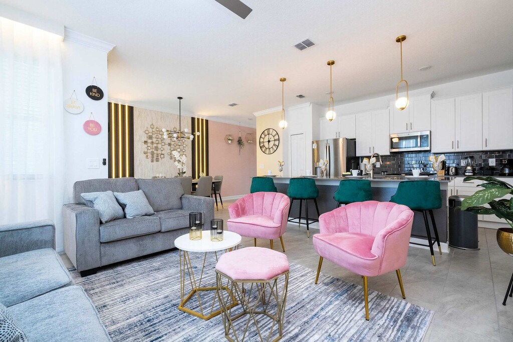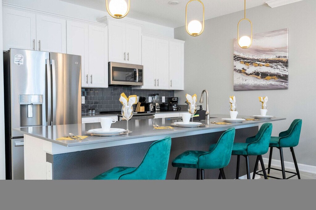 Experience luxury and fun at this stunning 4-bedroom townhome in Storey Lake. Enjoy elegant decor, a private heatable pool, and two amazing themed bedrooms—Harry Potter and Mickey Mouse—that kids and adults will adore. With a fully equipped kitchen, spacious living area, and top-tier amenities, this home offers the perfect blend of comfort and magic for an unforgettable getaway. Step into a world of refined comfort and unforgettable design in this stunning 4-bedroom luxury townhome. From the moment you arrive, you'll be captivated by the upscale ambiance and designer touches throughout. The spacious, elegantly styled living room flows seamlessly into a fully equipped gourmet kitchen, perfect for gathering and entertaining in style. Just outside, your own private, heatable pool awaits—an inviting sanctuary for relaxing afternoons under the sun. What truly sets this home apart are the two spectacularly themed bedrooms, crafted with care and creativity to delight guests of all ages. Dive into the magical world of Harry Potter, where charm and adventure come to life in every detail—or enjoy the timeless joy of the Mickey Mouse room, bursting with color and whimsy that will enchant both children and adults alike. Sleeping arrangements include: Bedroom 1 (1st Floor): Tranquil beach-themed room with a queen bed and private bathroom Bedroom 2 (2nd Floor): Lavish master suite featuring a king bed and ensuite bathroom Bedroom 3 (2nd Floor): Mickey-themed room with a bunk bed (two double beds) and an additional trundle single bed Bedroom 4 (2nd Floor): Harry Potter-themed room with one double bed and one single bed (Bedrooms 3 and 4 share a full bathroom) Additional conveniences include an in-home laundry room with washer and dryer, complimentary WiFi, free parking, and a welcome kit stocked with essential bathroom and kitchen items (please note that replenishment is not provided). Pool heating and BBQ grill use are optional paid services. Every corner of this extraordinary home has been curated to offer a one-of-a-kind getaway—where luxury meets imagination for a vacation you’ll never forget. Pool heating and BBQ grill use are optional paid services. Storey Lake Resort has the perfect location just 10 minutes from all major attractions and theme parks in Orlando including Walt Disney World, Universal Resort and Sea World. You will find fantastic resort amenities for the whole family to enjoy with a tiki bar, a resort-style pool with slides and lazy river, sports court, mini-golf, kayak and fitness center. There are 2 clubs inside the property, one of them with a themed pirate pool that kids will love is just walking distance from the house. Located just off Osceola Parkway, the resort has easy access to restaurants, shopping, and supermarkets, everything with a just 5 minutes drive distance. Quiet hours are between 22:00 and 8:00. We provide a detailed digital guide with all the essential information you’ll need during your stay, including house details and local recommendations. Our team is available 24/7, so if you need any assistance or have questions at any time, we’re just a message away. [SI]