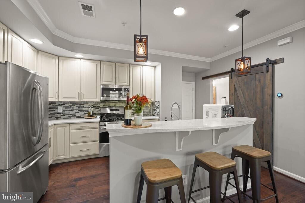 Beautifully updated, spacious 3br/2ba with 1 car garage available in desirable Morley Corner! Private treed views in the front of the home onto grassy common area! Quartz countertops, stylish white cabinetry, modern backsplash, SS appliances! So many wonderful features, rarely available in rental homes!! Thick plank, textured hardwood throughout the entire home!! Large master bedroom with 2 walk in closets. Master bathroom features a modern frameless shower with dual shower heads, upgraded tile and double vanities!! This level features 2 other bedrooms, one with a private balcony and bathroom and convenient laundry factilites!! No more hauling laundry up and down the stairs!!! Convenient to shopping, Wegmans, major access routes like Rt 28, Toll Road, Greenway, IAD!!! Minimum lease term until April 2027. All adults must apply and be on the lease. Nonrefundable application fee of $50/adult. This home will not last long!