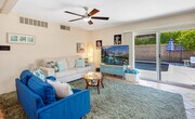 AVAIL NOW- FULLY FURNISHED. Mid-Century gated retreat home in the South End Palm Springs available as a 30 DAY MINIMUM RENTAL. Property is fully fenced with electric gate and plenty of room for off-street parking. This light & bright open concept floorplan offers beautiful tile flooring throughout & an updated kitchen with quartz countertops and aqua subway tile backsplash for that tastefully added ''Pop of Color''. Enjoy your very own oversized pool w/ Southern exposure & views of the western mountains. The Backyard boasts a gas fire pit as well avocado,guava & citrus trees. On the West side of this home is the 4th bedroom with it's own private access to the backyard. Solar system & Tesla EV Charger in place. Whether you are transferring to the area for work or looking for a vacation rental,this home is an amazing opportunity! 30-Day Minimum Stay Required. Pets Allowed with owner approval