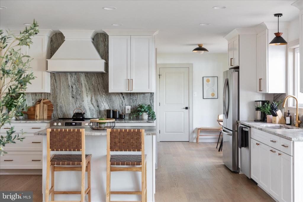 Fully furnished short-term rental! Stunning, completely renovated all-brick ranch home with a large loft and fully finished walkout basement, offering luxurious living in a serene lakeside setting. Nestled at the end of a quiet cul-de-sac, this home is surrounded by woods and boasts lake views on two sides. Inside, the open floor plan is highlighted by luxury vinyl plank flooring, large windows in every room that frame the lake views, and high-end finishes. The gourmet kitchen features custom cabinets, leathered granite countertops and backsplash, and stainless steel appliances. All bathrooms have been beautifully remodeled with custom tile flooring, designer vanities, and modern fixtures. The backyard is equally impressive, with a large deck, perfect for entertaining or relaxing, a backyard firepit overlooking the lake, and direct access to a scenic lakeside trail. Enjoy fishing, kayaking, or canoeing just steps from your yard. Tucked away in the woods for privacy, yet ideally located on the Gainesville side of Warrenton, this home offers easy access to shopping, dining, transportation, and local wineries. This is lakeside living at its finest!
