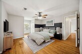 Beautiful 4-bedroom,2.5-bathroom two-story home in the desirable University Oaks neighborhood. This mid-century gem offers a flexible layout ideal for roommates,a home office,or multigenerational living. The first floor centers around a spacious living room complemented by a dining room,kitchen with abundant cabinetry and stainless steel appliances,and two bedrooms. Upstairs,the oversized primary suite features an ensuite bath and plenty of room for a sitting area. Another generously sized bedroom completes the second floor. Enjoy the oversized covered deck that opens to a large backyard that is perfect for hosting friends or savoring quiet moments outdoors. Located within walking distance to the University of Houston and MetroRail,this home offers quick access to the Medical Center,Downtown,the Museum District,and major freeways,making it the perfect blend of comfort and convenience. MLS# 70959765