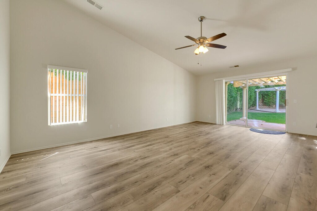 Now available for lease in the desirable Monticello II community,bordering North La Quinta! This spacious La Bella floor plan offers 4 bedrooms and 3 baths,including an attached casita with its own private entranceperfect for guests,a home office,or extended family. The home features an open-concept design with vaulted ceilings,dual primary suites on opposite sides,fresh paint,and new flooring throughout. Comfort is a priority with two HVAC units in the main home and a new mini-split system in the casita. A converted 3rd-car garage provides a versatile 5th bedroom or bonus space,while the landscaped backyard is ideal for relaxing or entertaining. Located near top-rated Desert Sands schools,parks,shopping,and dining,this home combines convenience,flexibility,and stylean opportunity you won't want to miss!