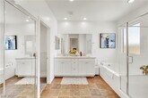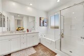 Beautiful home, move-in ready, fully furnished, one bed and bath downstairs, great location, EV-charging station, water filtration included, covered patio, one neighbor only since corner lot, modern light fixtures, spacious primary bedroom with luxury bathroom en suite, including separate tub, separate shower, private bathroom, custom closet and dual sinks.