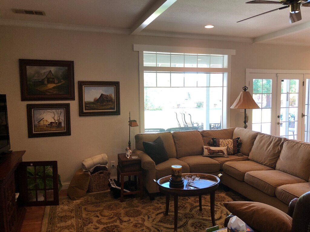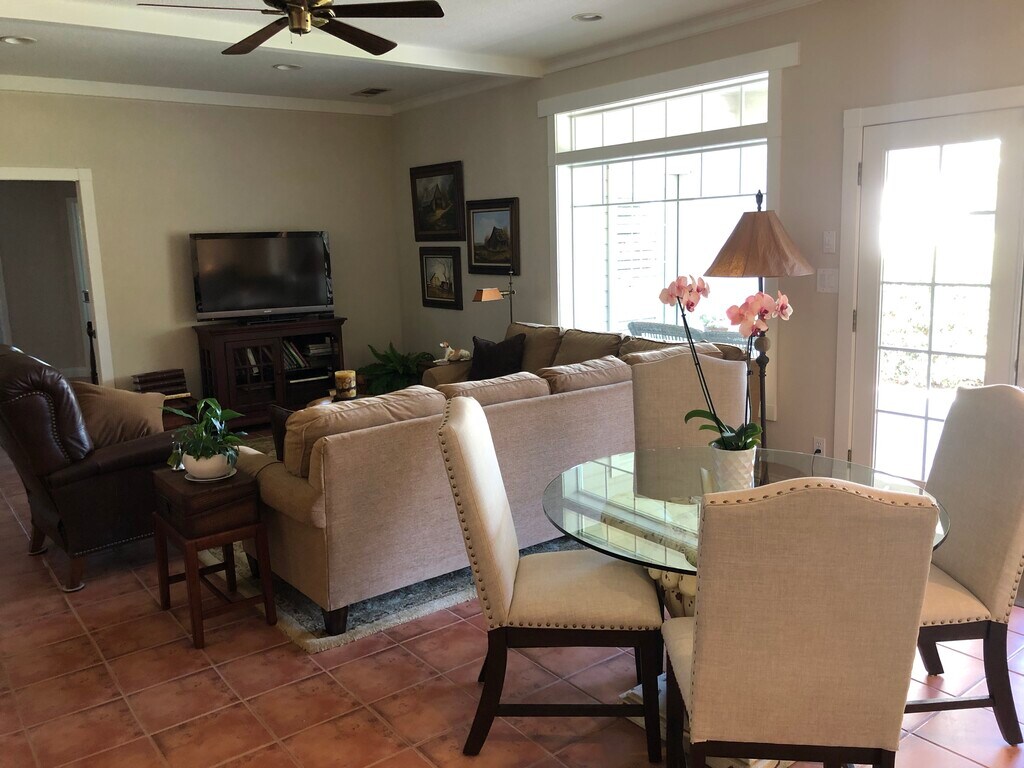 Contact Steve & Laurie Eskew at for tour. Spectacular single story home in beautiful sought after gated community. This gorgeous home features a looped drive way with oversized two car garage. Very large lot in front and back, far off street for privacy. Gorgeous manicured lawn with gardener provided by owner. LVP and tile floors throughout. Recently updated kitchen and baths. Beautiful quartz countertops throughout. Open floor plan. Formal and informal dining and living areas. Large bonus room! Ceiling fans in most rooms and whole house fan. Gated community with neighborhood club house, pool and tennis/sport courts. Tenant to pay all utilities. Pets negotiable with increased security deposit depending on breed, size and qualifications. No smoking. One Year Lease- to be negotiated. HOA does not allow overnight parking on the street, long driveway allows multiple vehicles.