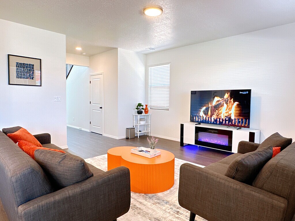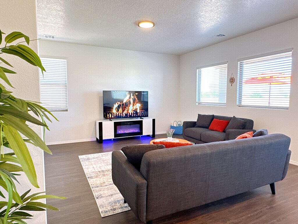 This BRAND-NEW house 2024 locates at the quiet and safe Las Residencias community with the Mazatlán model. It is surrounded by local restaurants and shopping. It welcomes you and your family with modern, stylish, and a lots of tech featured furniture (optional to stay). Beautiful BRAND-NEW backyard with fabulous mountain view, new pavers, fresh turfs, peaceful water fountain, and relaxing sitting areas. As you can see from the pictures, this can be your beautiful and relaxing home!