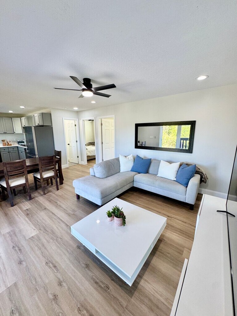 LOCATION, LOCATION, LOCATION! Enjoy lakeside living in this completely remodeled 2-bedroom, 1.5-bath fully furnished downstairs duplex with large front porch with beautiful Lake Minneola views. Just half a block from Lake Minneola and the Scenic Trail, and only a short walk to Downtown Clermont’s shops, restaurants, and events. Inside, you’ll find luxury vinyl flooring, brand-new cabinets, quartz countertops, and a stunning master bathroom, washer and dryer. This home is fully furnished and equipped with everything you need for a short getaway or an extended stay — just bring your clothes and relax! Cable and Internet included! Enjoy the Nescafe coffee maker! 2-night minimum stay. Weekly and monthly rates available. Contact us for more information.