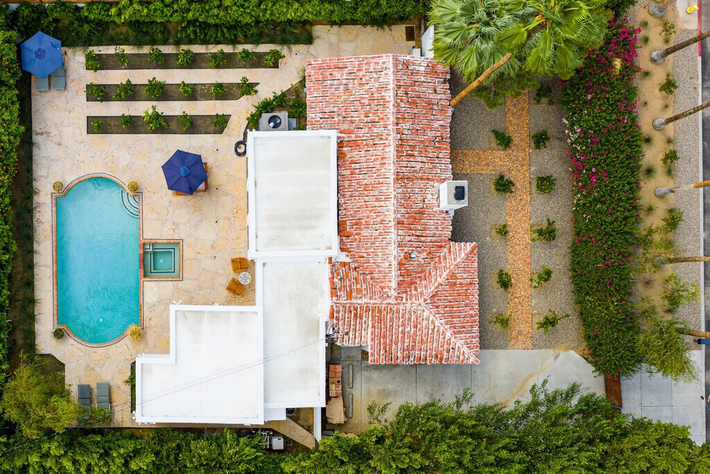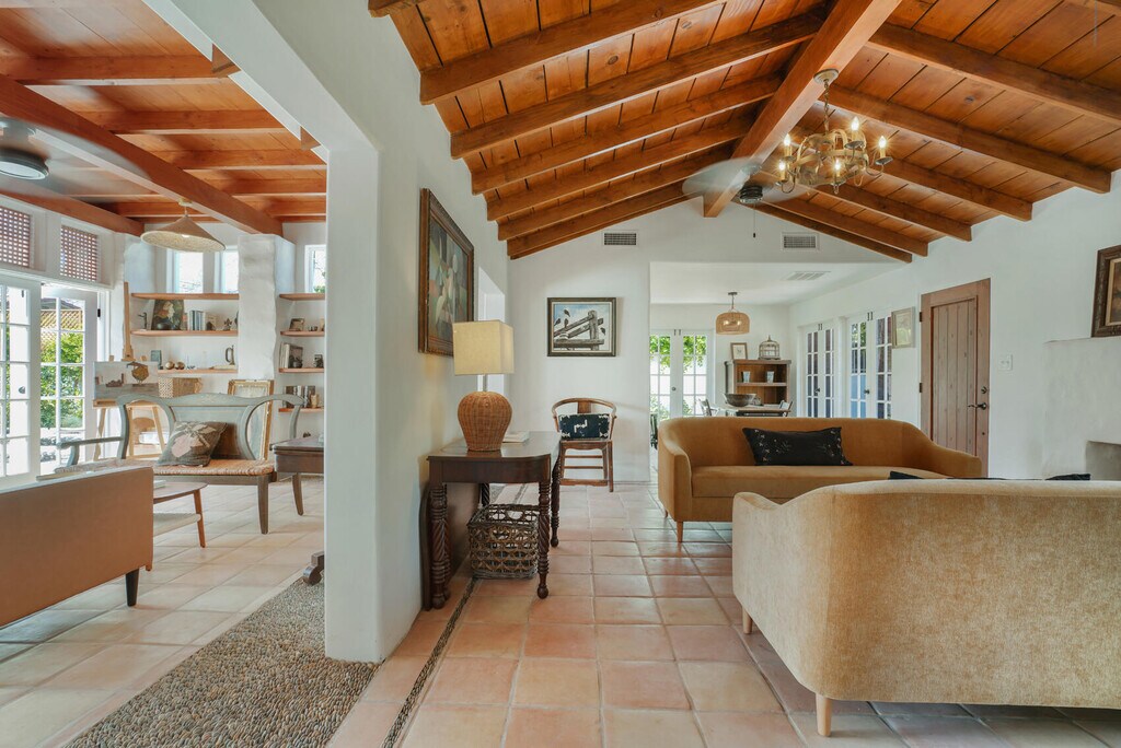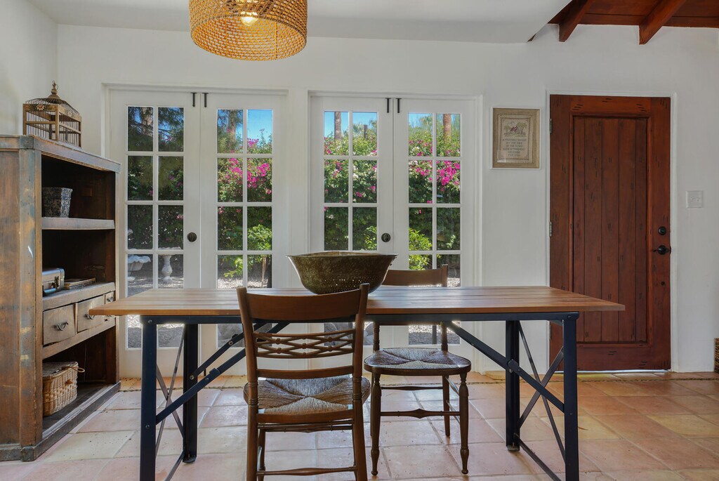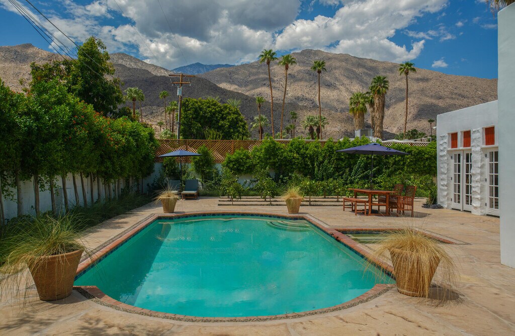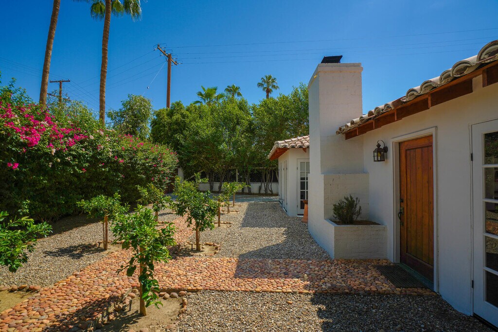 Casa del Passeron - Furnished Lease - $14,444/Month Welcome to Casa del Passero,a beautifully restored 1949 early California Spanish-style residence offered as a furnished lease in the coveted South Tahquitz River Estates neighborhood. Framed by breathtaking views of the San Jacinto Mountains,this character-rich home seamlessly blends historic charm with modern luxury. The inviting living area showcases restored wood-beamed ceilings,an original stucco fireplace,and an enclosed sun porch,perfect for relaxing or entertaining. The home offers two bedrooms,including a newly created primary suite with an en-suite bath,along with a second bedroom and stylish guest bathroom. Hand-laid tile and stone floors extend throughout both the interior and exterior spaces,creating a cohesive indoor-outdoor flow. The private,enclosed backyard is a serene retreat featuring a natural-style pool,in-ground spa,open patio deck,and lush citrus landscaping designed for maximum privacy and enjoyment. Extensively renovated,the property includes a new kitchen,laundry room,primary suite and bath,enclosed patio,restored ceilings,and new HVAC system. The home was meticulously restored by the Smiths,renowned for preserving iconic Palm Springs properties and featured in Palm Springs Life (May 2016). MLS # 219142021