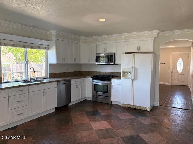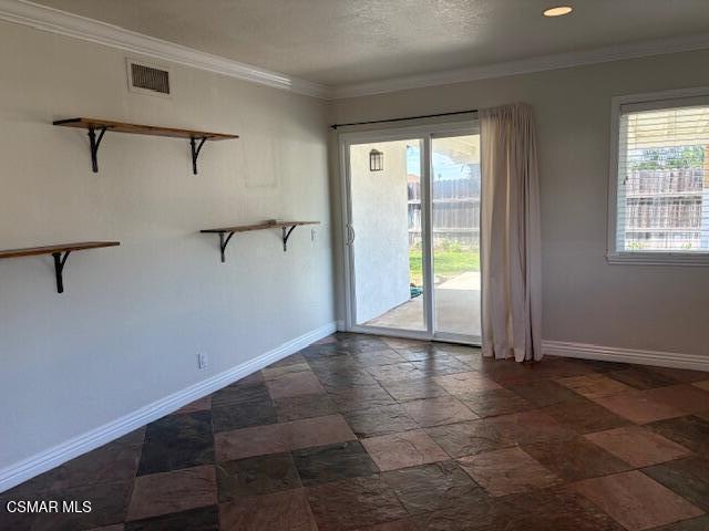 Great rental in the serene Peach Hill neighborhood of Moorpark. This charming single-family residence offers a perfect blend of comfort and style, for those seeking a peaceful retreat.Step inside to discover the large eat-in kitchen featuring new cabinets with new quartz countertops, and durable slate flooring. Smooth ceilings, recessed lighting, crown molding, dual paned windows and dark distressed hand-scraped wood floors that add warmth and character throughout the home. There's also a built-in desk off the living room. Nestled on a friendly cul-de-sac, this gem provides a tranquil haven. The 2-car garage, along with the inclusion of a washer, dryer, and refrigerator, ensures this home is move-in ready.The outdoor space offers an inviting area for your own vegetable garden. Conveniently located close to the community pool, park & playground, as well as the nearby elementary school.