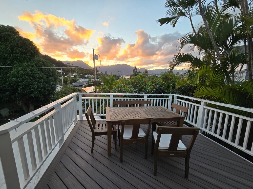 Pets negotiable! Electricity and water included! Enjoy Windward living off of Kaneohe Bay Dr. in this spacious 3 bedroom, 2 bathroom upstairs unit located on a quiet street in the desirable Bay View Garden neighborhood of Kaneohe. This bright and airy home features hardwood floors, abundant natural light, and cool trade wind airflow throughout. The large kitchen opens to a spacious deck perfect for outdoor dining and entertaining, creating a seamless indoor-outdoor living experience. The primary bedroom includes extra space ideal for a home office or lounge area. Additional highlights include in-unit laundry, a mudroom, and ample storage.