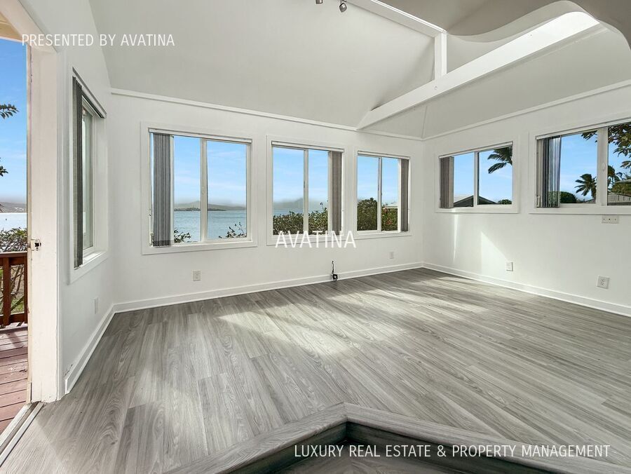 Super rare Oceanfront home with amazing views! Charming 2 bedroom 1.5 bath bayfront home that makes for your fantastic Hawaiian getaway! Welcome home and take in the sweeping views of Kaneohe Bay or watch the sunset over the Koolau's! Inside is a bright sunken living room with a den that opens onto a huge backyard lanai! Down the hall is the dining room and Chef's kitchen which also opens up to the lanai through sliding glass doors. Chill on the spacious wooden deck overlooking the ocean and tropical landscaping. Upstairs are two more bedrooms with ceiling fans, full sized closets and vaulted ceilings! Both share the gorgeous full bathroom with a soaking tub to die for! Luxury plank vinyl flooring is found throughout the home plus an in unit full size washer and dryer. There is a detached two car carport with tons of storage! Tons of plumeria trees littering the lawn with fragrant flowers and mature landscaping! Pet friendly plus your landscaping service is included! This place has it all! Fantastic waterfront location that's near Kailua with easy freeway access! YouTube Tour: 3D Virtual Tour: Schedule a showing at: Or call: (8O8) 645-449O - Address: 44-327 Kaneohe Bay Dr View more available at 6 mo + lease, Rent = $5,995. a month plus $15.50 Liability to Landlord Insurance & credit reporting fee, Security Deposit: $5,995. All rents & security deposits are due at signing. Liability to Landlord and Renters Insurance required. $20.00 application fee, $100. one time onboarding fee with approved application. Monthly Pet Fee $100. a month with $500. security deposit per pet. Services included - trash, landscaping service. No Smoking vaping. Presented by Avatina Luxury Real Estate and Property Management. Waterfront Sea Wall Yard Service