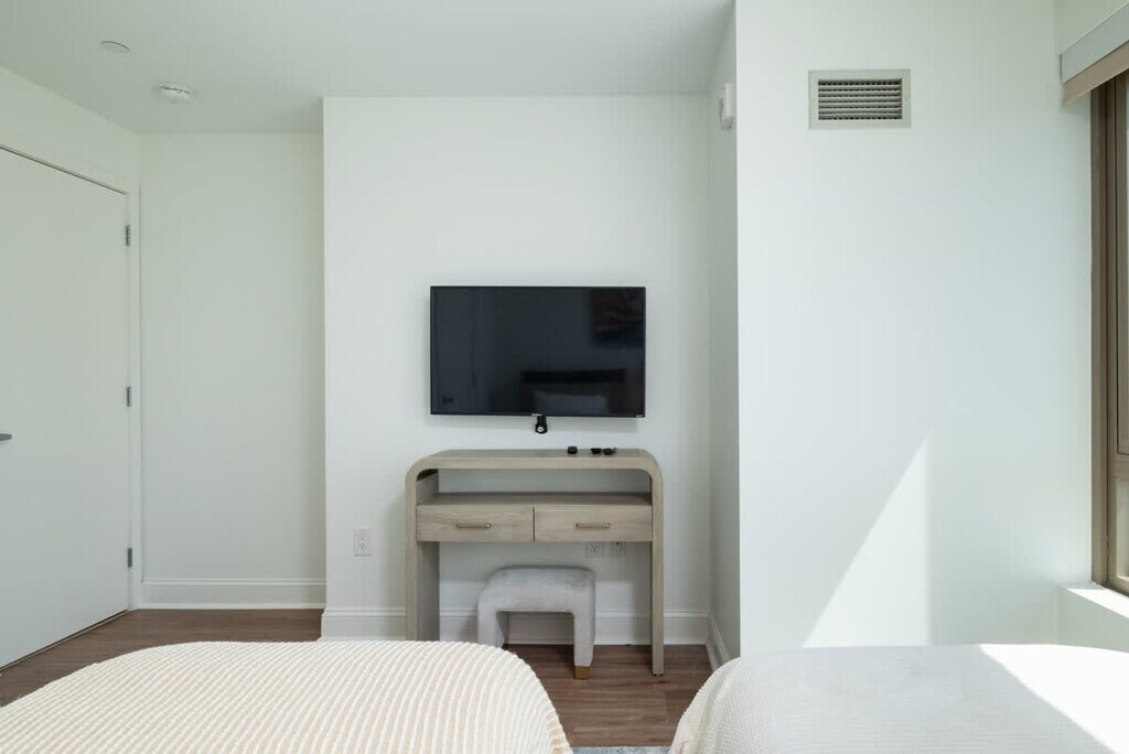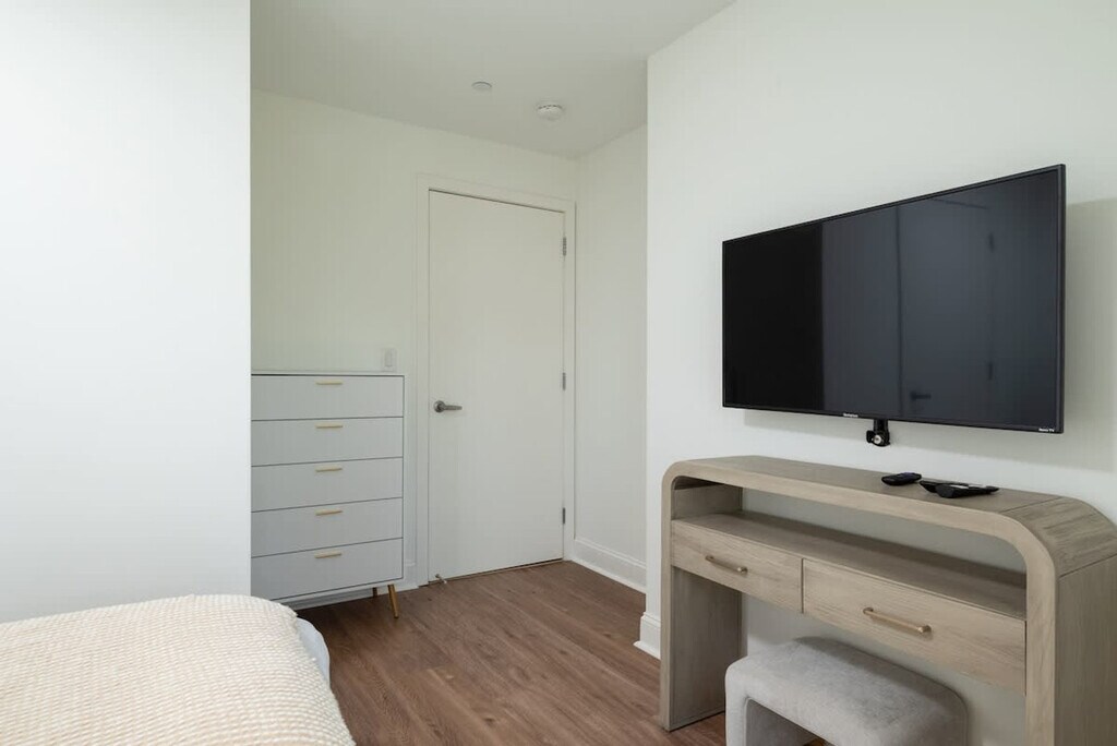 Feel at home in this luxurious 2-bedroom condo with 2 full bathrooms, offering breathtaking views of Boston's Chinatown. The apartment is equipped with 2 elevators. This upscale penthouse features open living areas, brand new temporary furniture, a modern kitchen with granite countertops, hard flooring, and Whirlpool Energy Star appliances. The gourmet kitchen is fully equipped with dishes, glasses, cutlery, pots, pans, Shaker-style birch cabinets, tile floors, granite countertops, a full-size Energy Star GE stainless steel appliances (four burner stove, oven, microwave, dishwasher, and side-by-side full-size refrigerator with ice maker), a toaster, and a coffee maker. Coffee, tea, and sweeteners are provided. There is also an in-unit washer and dryer. Underground parking is available for $45 per night for short-term stays. Parking is free for monthly stays. A baby crib and high-chair are available. Enjoy views of the Boston skyline from this centrally located apartment. The building was constructed with sensitivity to energy consumption and environmental issues, including natural ventilation and extensive natural light. No parties, birthday parties, or any sort of party gathering is allowed. Noise or loud music at any time during your stay will result in cancellation of your stay. The apartment is equipped with noise detectors to stay in compliance with the city ordinance. No smoking is allowed on the premises; a $500 fine and immediate cancellation will result if violated. Quiet times are from 9 pm to 9 am. A $500 fine will be charged for smoking or partying. Max guest capacity is 5 for this 2-bedroom apartment unless agreed upon before check-in (additional guests may be accepted for an extra fee), and violators will be asked to leave immediately with no refund. All guests over 18 are required to submit a copy of their IDs. Please close and lock all windows and doors when you leave. All food/beverage leftovers must be trashed outside the apartment. While every effort is made to maintain a clean environment, guests should expect that pet hair may be present on furniture or in common areas. Periodic building maintenance may occur, which could temporarily affect the availability of certain amenities. Furniture and interior elements may be replaced or updated at any time due to maintenance, repairs, or upgrades. Please do not order mails without asking first, as the owner doesn't accept mails/deliveries without prior permission. Includes a dedicated workspace. Registration Number: STR645328 [SI]