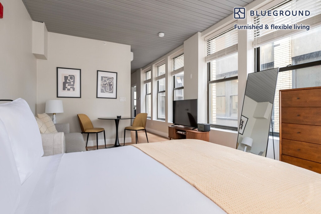 Feel at home wherever you choose to live with Blueground. You’ll love this pretty Downtown Crossing furnished studio apartment with its modern decor, fully equipped kitchen, and cheery living room. Ideally located, you’re close to all the best that Boston has to offer! (ID #BOS1312) The advertised rate of $3,610/month is the lowest available price, based on a 12 month(s) stay with a move-in date of May 15, 2026. Rates vary depending on the duration of stay, season, and other parameters. For exact pricing and additional pricing components, please visit our website and enter your desired move-in and move-out dates. The rate is applicable when billed upfront; it can be higher if billed in multiple payments. Brokers are welcome to reach out. Were you looking for an unfurnished lease? Try Blueground instead and upgrade from unfurnished to furnished living: - Furnished at rates comparable to unfurnished - No setup or furniture costs - save thousands - Move-in ready - save time, just bring your suitcase Designed with you in mind Thoughtfully designed with bespoke finishes, modern furnishings, and a fully equipped kitchen, you’ll enjoy that “I’m home” feeling with this Blueground apartment. Whether you’re lounging in your cozy living room streaming the latest and greatest entertainment on the smart TV or premium wireless speaker, or getting some well-earned rest on the superior quality mattress with fully stocked linens, you’ll fall in love with everything this Downtown Crossing apartment has to offer. Sleeping arrangements Queen Bed, 63in/160cm Amenities Building amenities unique to this studio apartment include an on-site: - Elevator - Lounge Arrival and ongoing support The entire apartment is yours to enjoy! Throughout your stay, you’ll have access to our Client Experience team through the Blueground App. You can schedule additional cleanings, submit maintenance requests, and view our neighborhood recommendations with just a few taps. We’ll share all details upon confirmation of your stay. Other things to note Building amenities may have an extra cost. This Blueground apartment has flexible lease options, allowing you to book it for one month, a year, or more. We take great pride in ensuring every photo displayed is shot in our own units with our actual furnishings. That said, we regularly refresh our decor and furniture arrangement, which may differ from what’s pictured. [SI]