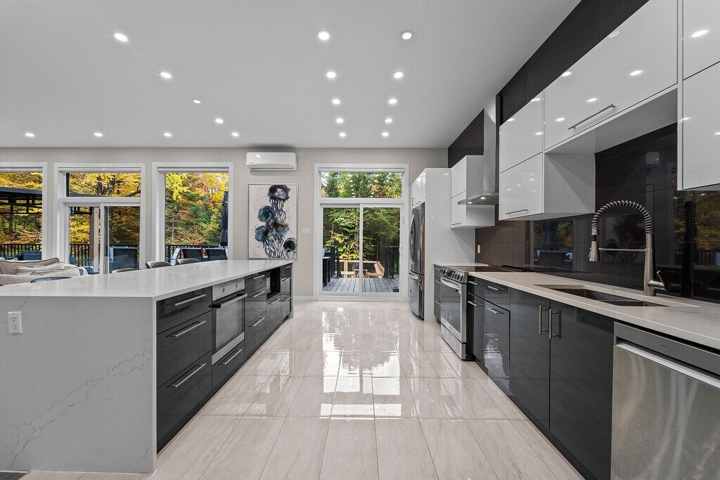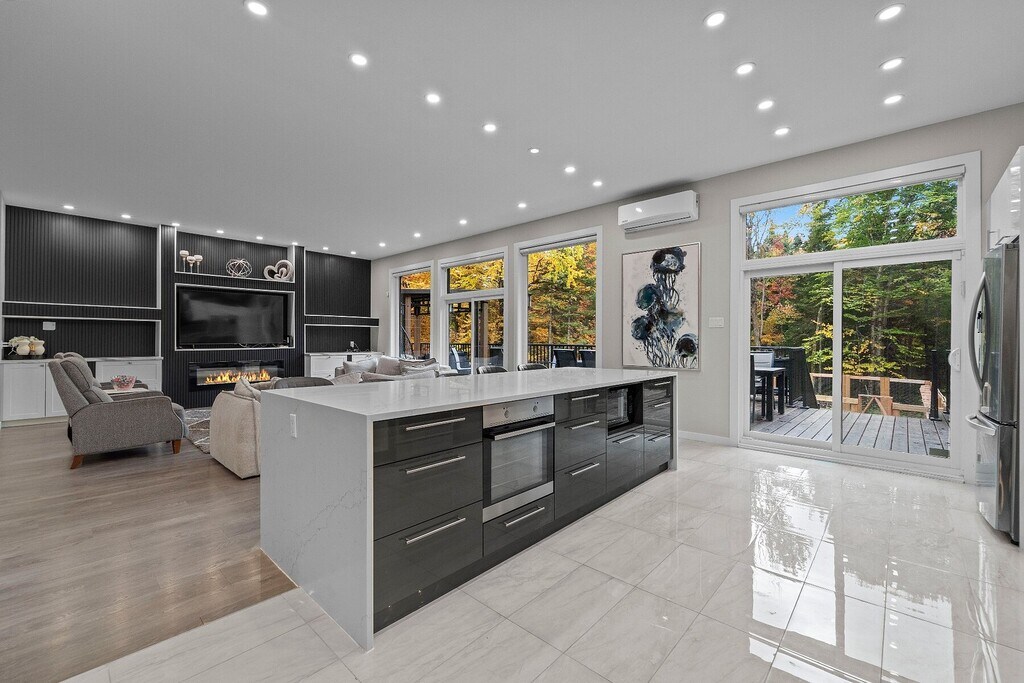Nestled in one of the most sought-after areas of the Laurentians, this prestigious residence offers a unique setting where modern elegance meets natural serenity. With nearly 6,000 sq. ft. of living space, the property features 4 bedrooms, an office, 3 bathrooms, an open-concept kitchen, a bright living area, and an elegant dining room -- perfect for entertaining. Ten-foot ceilings and abundant natural light create a warm, airy atmosphere. The expansive terrace is ideal for a spa, outdoor dining, or simply relaxing in the sun. Just a one-minute walk from public access to Lac Masson.