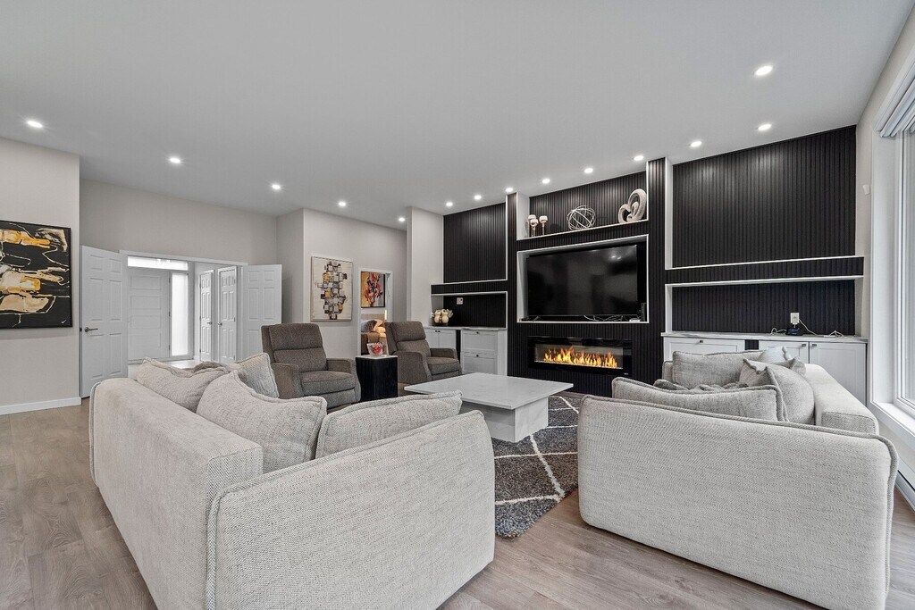 Located in one of the most sought-after regions of the Laurentians, just 1 hour and 15 minutes from Montreal, this prestigious residence offers a unique setting where modern elegance meets natural serenity. With nearly 6,000 sq. ft. of living space, the property features 4 bedrooms, 1 office, 3 bathrooms, an open-concept kitchen adjoining the living room, and a refined dining area--perfect for entertaining. Ten-foot ceilings and abundant natural light create a warm and airy atmosphere. The oversized terrace, a natural extension of the home, is ideal for a spa, outdoor dining, or simply relaxing in the sun.
