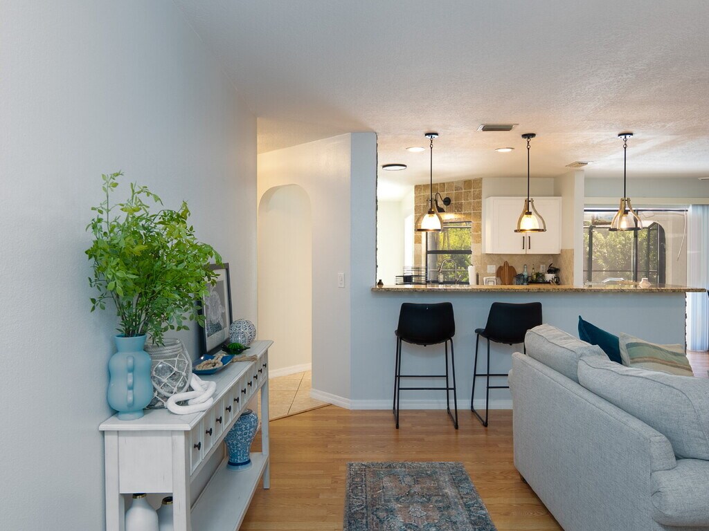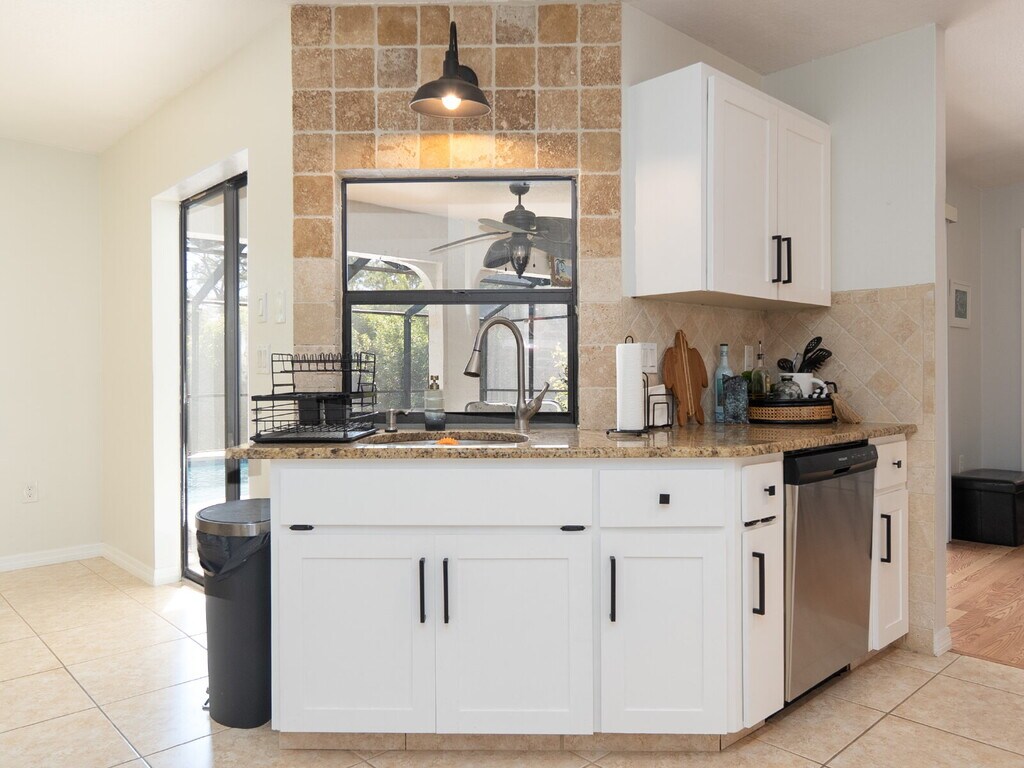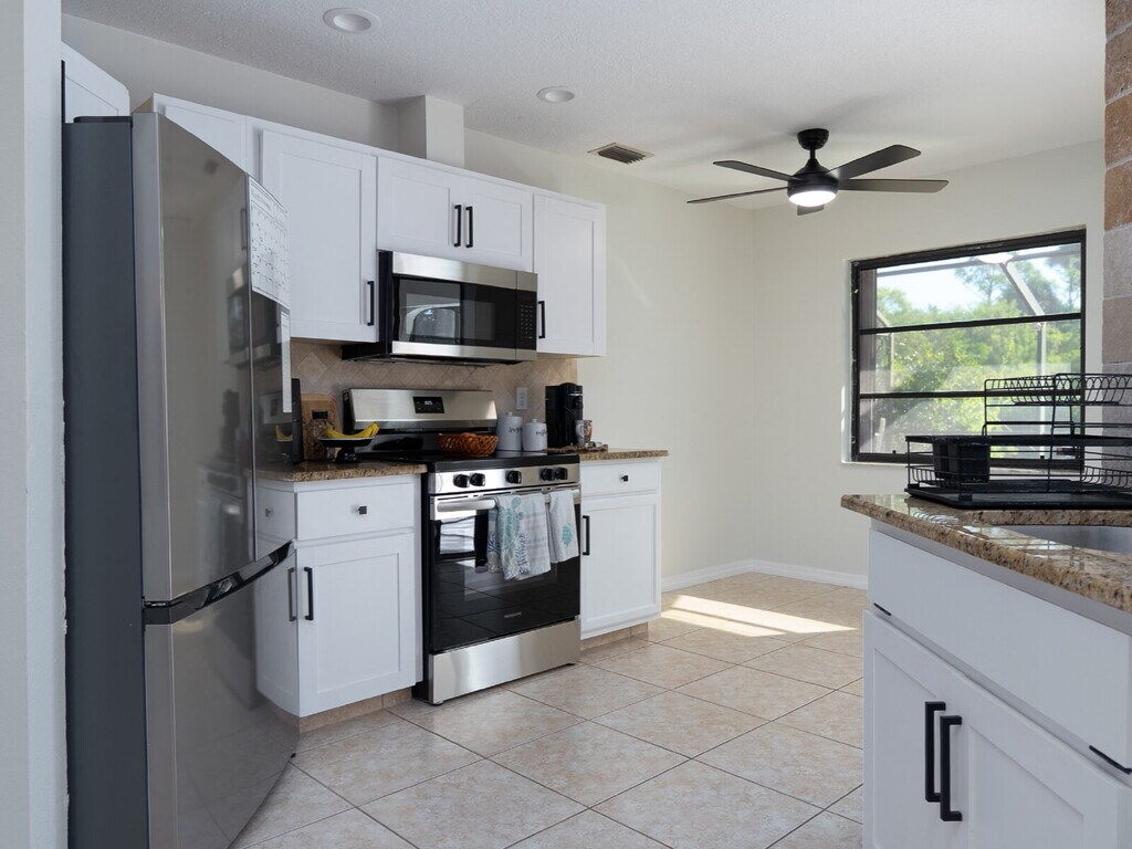 Settle into the Florida lifestyle in this well-cared-for 3-bedroom, 2-bath pool home set right on the Cheshire Waterway in Port Charlotte. With a smart, open layout and roughly 1,500 square feet of living space, the home feels bright, comfortable, and easy to live in—whether you’re relaxing after work or hosting friends for the weekend. The kitchen has a fresh, modern feel and comes with brand-new appliances, solid-surface counters, and stainless finishes, plus a sunny breakfast nook for casual meals. You’ll also appreciate the clean, low-maintenance flooring throughout—no carpet—making upkeep a breeze. The primary suite offers great privacy and an updated en-suite bath, while the two additional bedrooms give you plenty of flexibility for guests, a home office, or family space. Step outside to your private screened lanai and sparkling in-ground pool, then take in the peaceful canal-front setting just beyond the yard. It’s the perfect backdrop for morning coffee, weekend grilling, or a quiet sunset by the water. Add in mature tropical landscaping, a roomy 2-car garage, and hurricane shutters for peace of mind, and you’ve got a home that checks every box for Southwest Florida living. Available furnished or unfurnished on a 12-month lease, this one is ideal for anyone wanting space, privacy, and that “vacation-at-home” vibe—while still being close to shopping, dining, and quick routes to US-41 and I-75. Schedule your showing today and come see why this waterfront pool home is such a standout.