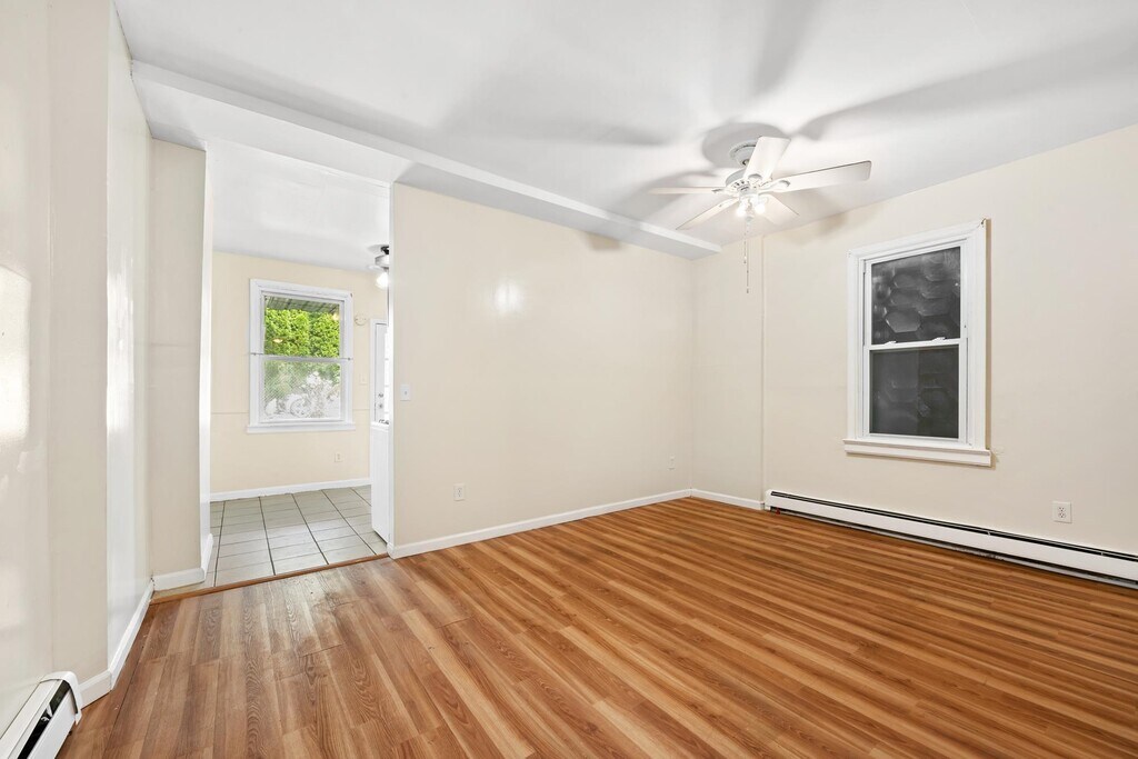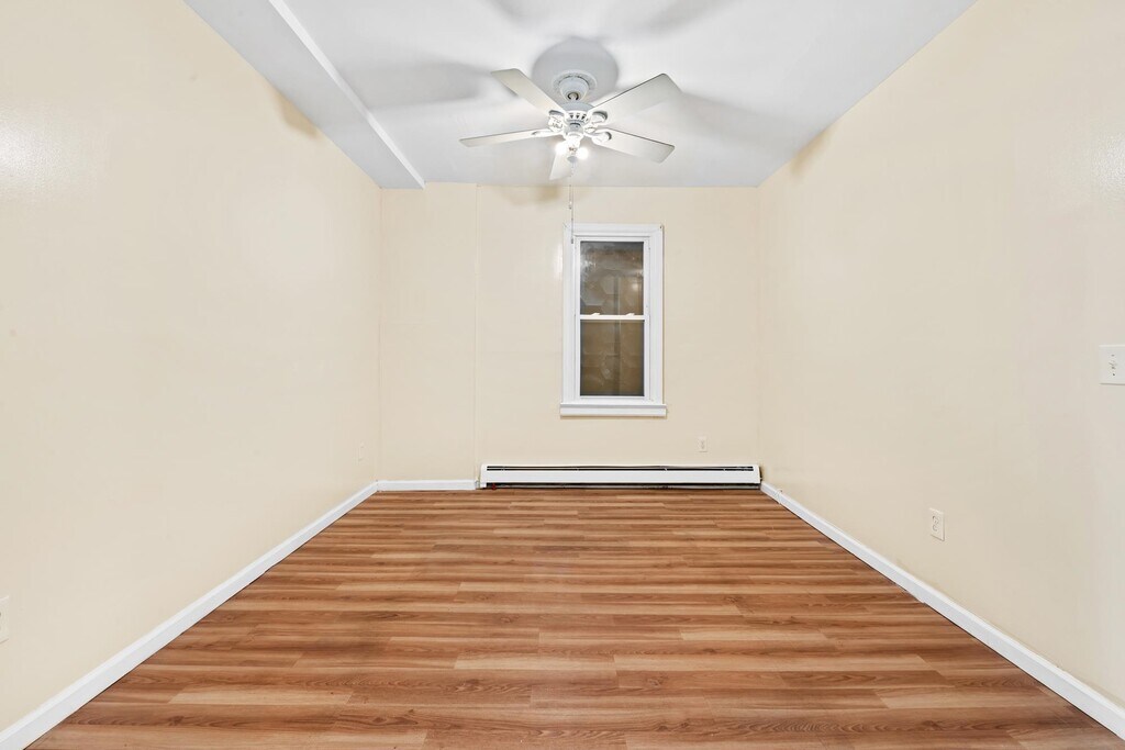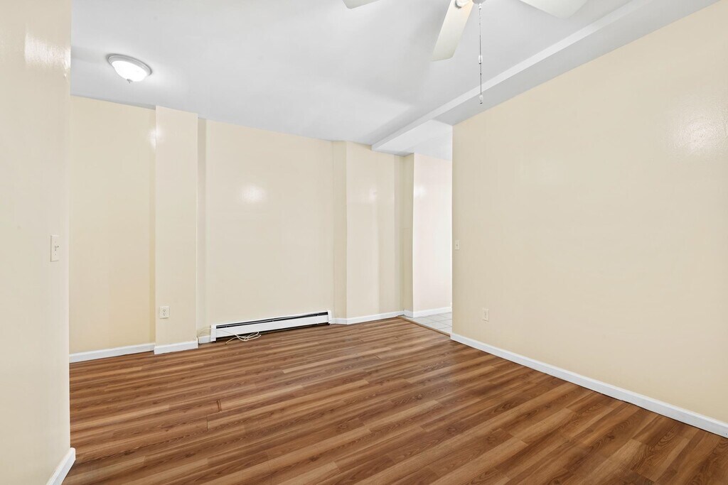 Great two-bedroom apartment in the center of Jersey City, Journal Square, with a large private yard. This two-bedroom, one-bathroom apartment, which has been recently painted and has new flooring in the front bedroom, is situated in a two-family house on the first floor on a quiet street, only a short distance from the PATH. The spacious private turf yard is accessible from the light-filled kitchen, which also has a gas stove and a new refrigerator. Ideally situated, near restaurants, grocery stores, and transit. No pets, No smoking. Available for occupancy immediately.