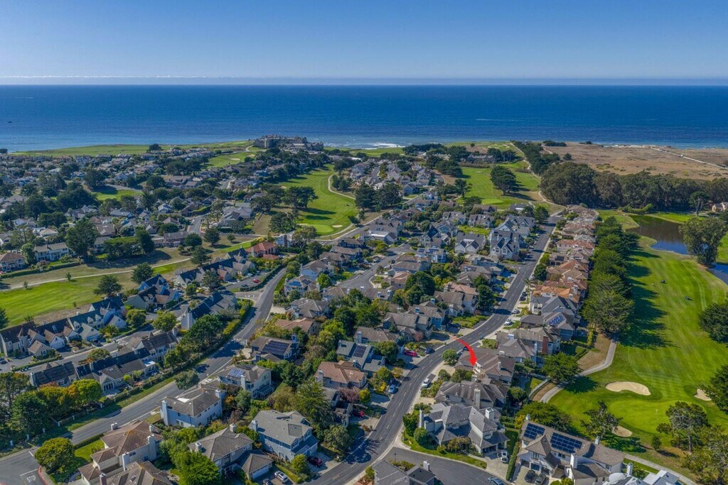 Rent this beautiful home located on the first fairway of the Half Moon Bay golf links. Beautifully furnished with access to all the amenities within the gated community of Ocean Colony. The views from this home are terrific overlooking verdant fairways framed by coastal hills beyond. This is a great street located very close to the ocean and within easy walking distance to the beach. The home is very well equipped, with a gourmet kitchen including Wolf 5 burner cooktop, double oven, microwave, wine fridge, and walk in pantry! If youre thinking of BBQing, youll have access to a gas BBQ + a BIG GREEN EGG ! Enjoy al fresco dining with an outdoor table seating 10! Three gas log fireplaces located in formal LR, FR, and primary BR. Most of the lower level is fi in hardwood floors with some great Persian rugs thoughtfully placed. The living room & lower level office are carpeted. The upper level has wool NZ carpet throughout. There is even a lovely spa/jacuzzi tucked away near the side of the house for use by the lessees. The community has a covered pool, tennis courts and and exercise facility with saunas in the locker rooms. This is available for membership while renting a home in Ocean Colony. MLS # ML82038023
