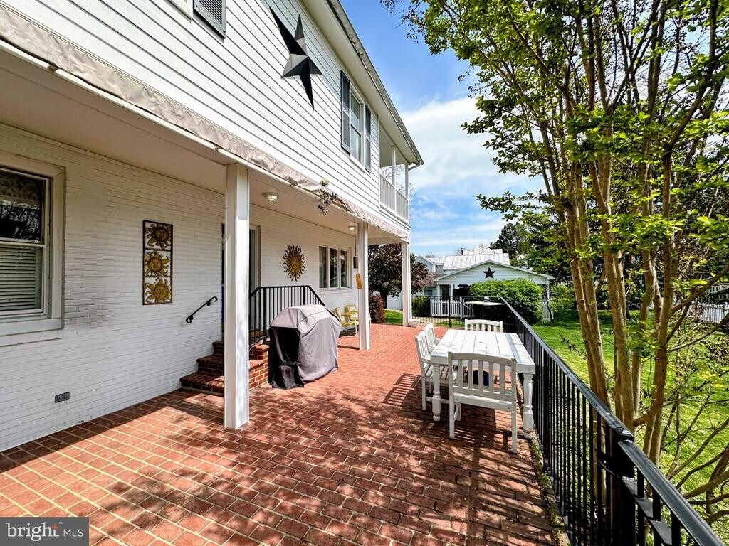 Charming historic home with modern updates in the heart of Walkersville. This beautifully maintained property blends classic character with everyday functionality, featuring a freshly painted front porch, mature landscaping, and refinished hardwood floors throughout the main level. Inside, abundant natural light highlights a flexible layout, including a spacious front room ideal as a fourth bedroom, office, or library with a fireplace and electric insert. The recently renovated kitchen offers updated flooring, appliances, countertops, and a custom table, along with a convenient half bath and butler’s pantry. Upstairs, the primary suite includes a custom walk-in shower and a cozy sun porch, while the guest bath features a double vanity, clawfoot tub, and separate shower. Additional bedrooms retain charming period details, and a rear family room with a working fireplace provides a comfortable gathering space. Outside, enjoy a large brick patio with remote-controlled awnings, a custom teak dining set, and a stainless steel grill—perfect for entertaining. The property also offers a four-car pavilion, two-bay shop, ample storage, and a unique cellar with a hidden hangout space. Ideally located along Walkersville’s annual parade route, this home offers a rare opportunity to enjoy historic charm, modern convenience, and a true small-town atmosphere.