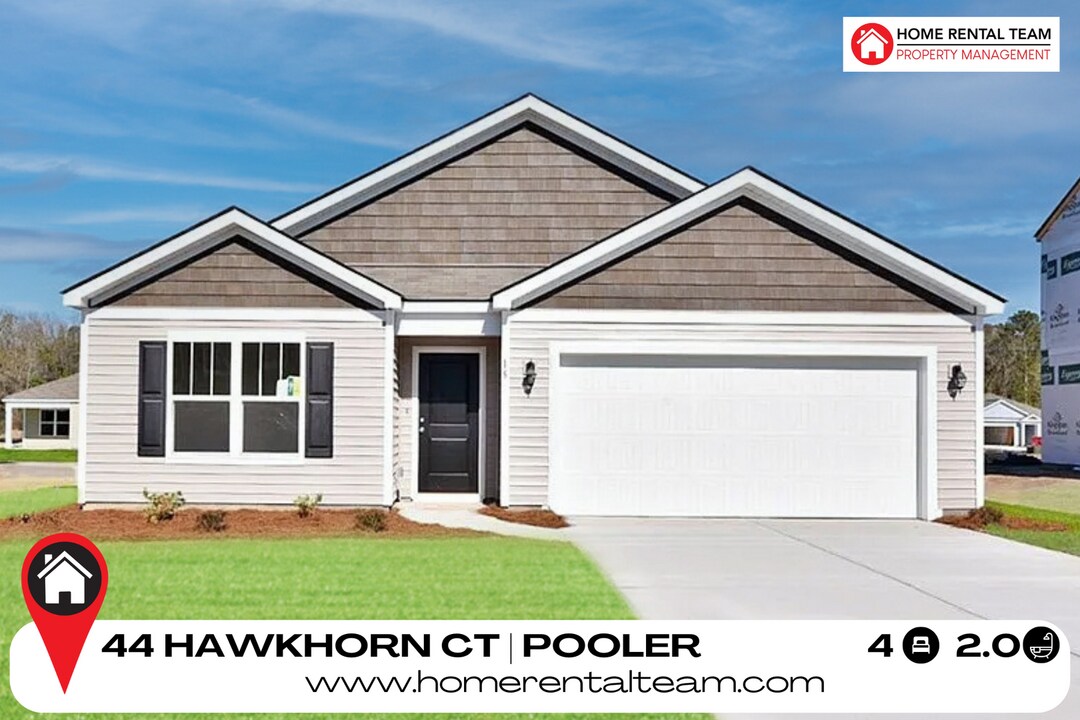 Welcome to 44 Hawkhorn Court! This beautifully designed 4-bedroom, 2-bath home offers the perfect size and layout for comfortable living. Home Highlights: - Gourmet kitchen with elegant cabinetry, floating island with granite countertops, overlooking the open dining and living areas. - Upgraded finishes includes floating vinyl flooring throughout the main living spaces. - Located in the desirable gated Godley Park neighborhood. - Resort-Style Amenities: Zero-entry swimming pool, tot lot, sand volleyball, plus landscaping included for front and side yards. - Pets allowed per homeowner approval. With its spacious design, modern upgrades, and access to exceptional amenities, this home delivers a lifestyle of convenience and elegance in one of Pooler’s most sought-after communities. 3D Tour Link: