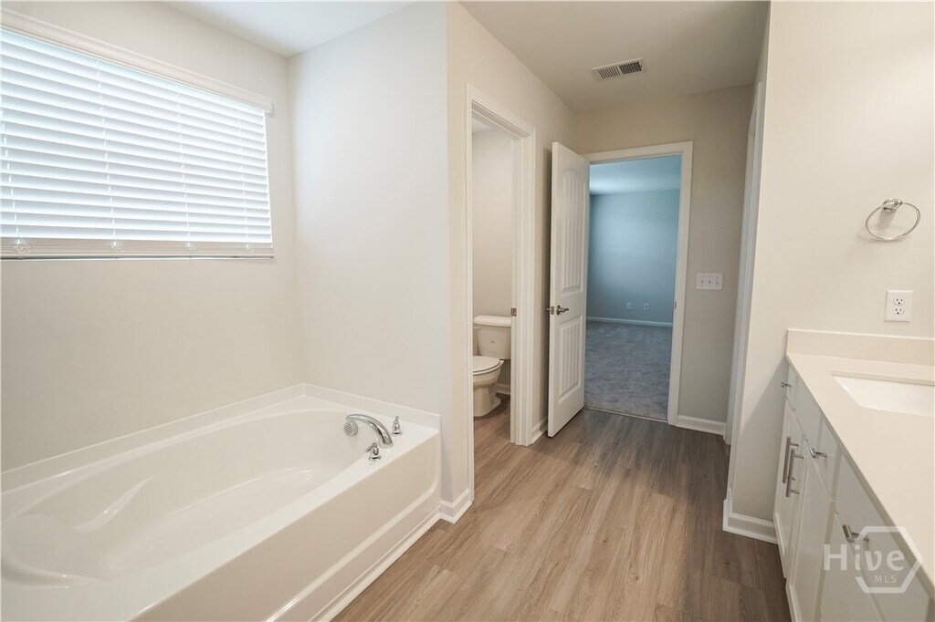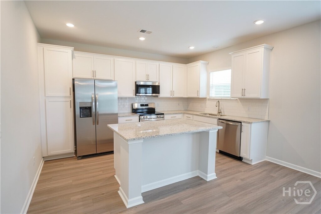 Welcome to 44 Jazz Drive,a newly built 5-bedroom,3-bath colonial-style home offering nearly 3,000 sq ft of modern living space in the heart of Pooler. Nestled on a quiet lakefront lot,this two-story residence combines elegant design with everyday comfort. The open floor plan features a spacious living room and a contemporary kitchen with granite countertops,center island,stainless steel appliances,and ample cabinet space. A guest bedroom and full bath on the main level provide flexibility for visitors. Upstairs,you'll find four additional bedrooms,including a generous primary suite with double vanities,a garden tub,and a walk-in shower. A large loft offers space for a media room,office,or play area,while the upstairs laundry room adds convenience. Additional highlights include a two-car garage and a covered patio. Located just minutes from I-95,I-16,Savannah Airport,and the Hyundai Metaplant,this home offers both tranquility and accessibility.