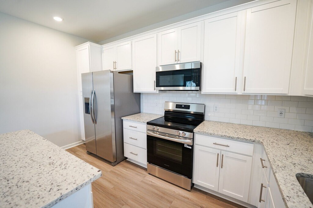 Welcome to 44 Jazz Drive, a newly built 5-bedroom, 3-bath colonial-style home offering nearly 3,000 sq ft of modern living space in the heart of Pooler. Nestled on a quiet lakefront lot, this two-story residence combines elegant design with everyday comfort. The open floor plan features a spacious living room and a contemporary kitchen with granite countertops, center island, stainless steel appliances, and ample cabinet space. A guest bedroom and full bath on the main level provide flexibility for visitors. Upstairs, you'll find four additional bedrooms, including a generous primary suite with double vanities, a garden tub, and a walk-in shower. A large loft offers space for a media room, office, or play area, while the upstairs laundry room adds convenience. Additional highlights include a two-car garage and a covered patio. Located just minutes from I-95, I-16, Savannah Airport, and the Hyundai Metaplant, this home offers both tranquility and accessibility.
