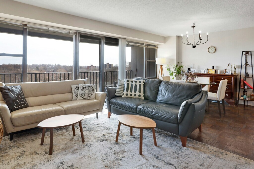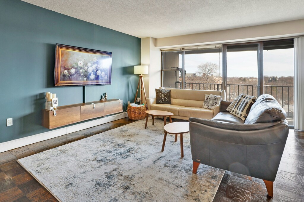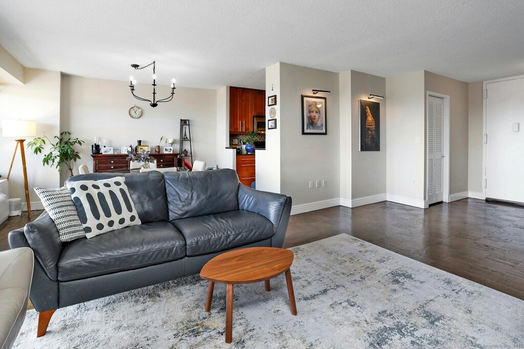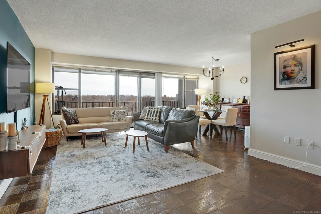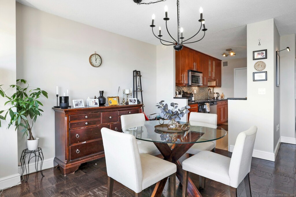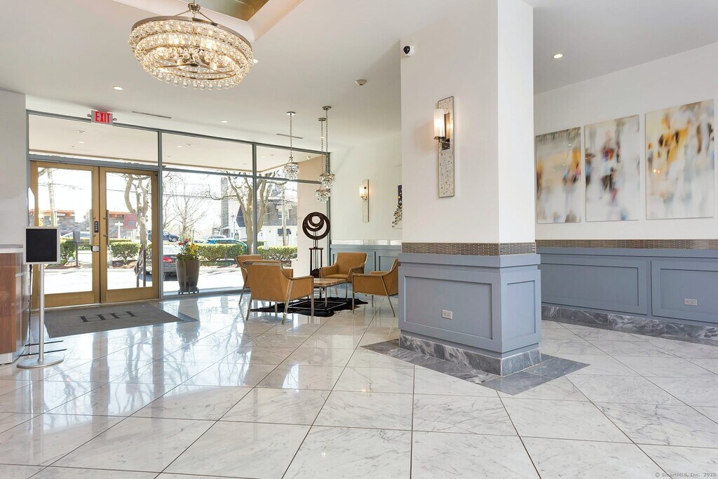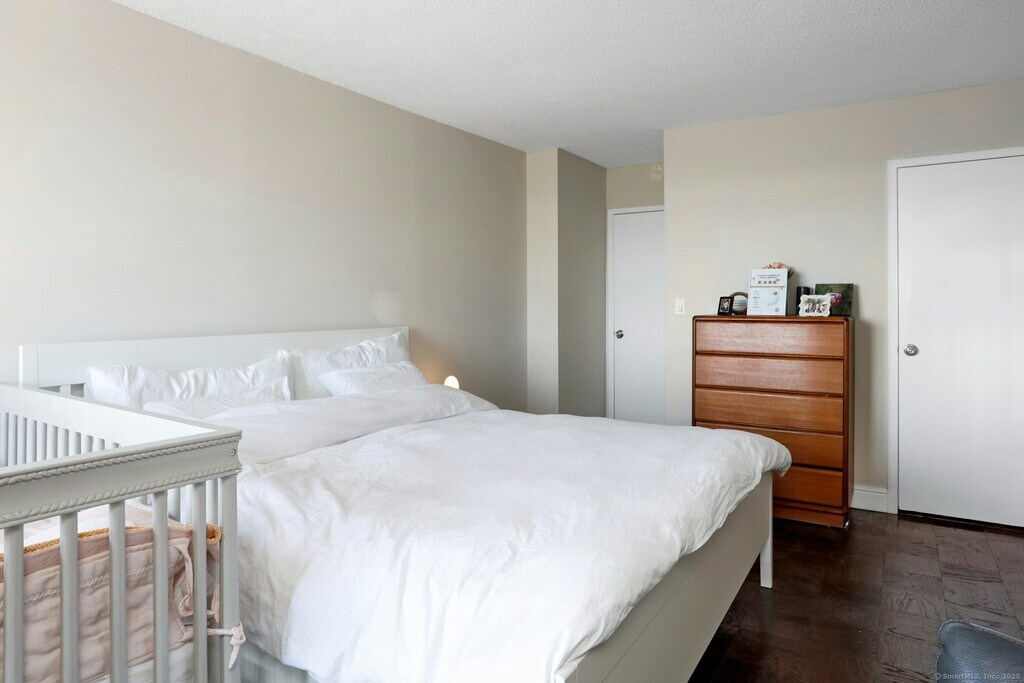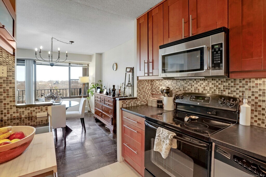Call for Availability - Experience high-rise living at its finest in this stunning 7th-floor condo at The Hayes House, nestled in the heart of downtown Stamford. This spacious one-bedroom residence boasts unobstructed east-facing panoramic views, bathing the open-concept living and sizable dining area in natural light. Elegant hardwood parquet floors flow throughout, adding warmth and sophistication. The expansive primary bedroom serves as a true retreat, comfortably fitting a king-size bed with additional space for a sitting area or workspace. Thoughtfully designed with two sizable closets, it provides ample storage for effortless organization. Wake up to sweeping city and treetop views, creating a serene start to each day. The modern kitchen features sleek cabinetry, granite countertops, and stainless steel appliances. A stylishly updated bathroom and abundant closet space complete the unit. Step onto your private balcony and take in breathtaking skyline and lush tree-lined views. This full-service building offers first-class amenities, including a live-in superintendent, full-time door staff, a fitness facility, and private storage. Reserved garage parking and ample guest parking provide added convenience. With heat, hot water, and central air included-plus a prime location walkable to Stamford's vibrant restaurants, nightlife, and shopping with easy access to I-95 and the Merritt Parkway-this is a must-see opportunity for sophisticated urban living! MLS# 24170016