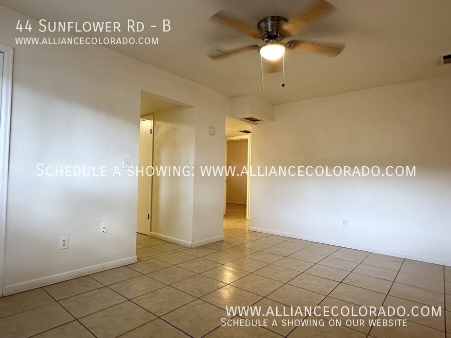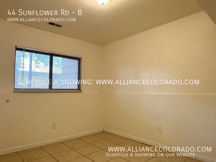 IMPORTANT: Schedule a showing on our website. All showings are scheduled online. www. alliancecolorado. com QUESTION ABOUT APPROVAL CRITERIA? Complete approval criteria is posted on our website, please review there. *ASK ABOUT OUR MOVE-IN INCENTIVES!* Lower-level duplex centrally located with easy access to I-25 for both Fort Carson and Denver commuters. Single level living boasts a cozy family room and updated eat-in kitchen with stainless steel appliances and pantry. Access to fully-fenced backyard off kitchen. Updated full bath, plus two good-sized bedrooms down the hall. All tile flooring. No carpet! • Built in 1984 • 754 sq ft • 2 bdrm, 1 bath • Washer/dryer included • Ceiling Fans • 1-car attached garage + driveway & off-street parking ~Available IMMEDIATELY ~Rent $995 - tenant pays all utilities; less trash ~Utilities $90/month flat-rate (includes water & waste water; tenant to place electric and gas in their own name with utility provider) ~Move-in Cost (due at lease signing) • Security Deposit (equal to 1- or 2- month's rent: credit dependent) OR ask us how to waive your security deposit! • First month's rent in full • Lease Administration Fee: $79 (one-time, non-refundable) – WAIVED WITH EXECUTED LEASE • Resident Benefits Package (OPTIONAL): $40.95 (monthly; no prorations allowed) • Pets: monthly fee (non-refundable, never prorated) AND additional $300 deposit (if applicable) ~$50 (non-refundable) application fee per adult – please review our approval criteria on our website before applying – REFUNDED WITH EXECUTED LEASE ~No smoking ~No marijuana growing ~Pets: • One (1) dog considered - must be 1 + year old • Refundable $300 additional deposit • $35 monthly pet fee • One (1) 20-gal fish tank considered • No other pets considered, no exceptions Alliance Property Management, Inc Managing Broker: Melissa Griffeth ; ext 2 (call or text) seven one nine, three five five, eight six eight eight www. alliancecolorado .com (click “for rent” to schedule a showing) Applicant has the right to provide Landlord with a Portable Tenant Screening Report (PTSR) that is not more than 30 days old, as defined in § 38-12-902(2.5), Colorado Revised Statutes; and 2) if Applicant provides Landlord with a PTSR, Landlord is prohibited from: a) charging Applicant a rental application fee; or b) charging Applicant a fee for Landlord to access or use the PTSR. Report must include; *Name *Contact information *Verification of employment and income *Last-known address *Rental, credit, and criminal background histories, in compliance with Colorado law Reports must meet the following criteria; *Completed within the last 30 days *Made directly available to the landlord by the consumer reporting agency or through a third-party website regularly engaged in the business of providing consumer reports, in compliance with all applicable consumer reporting laws *Provided to the landlord at no cost *A statement from the prospective tenant that there has not been any material change in the information provided in the report